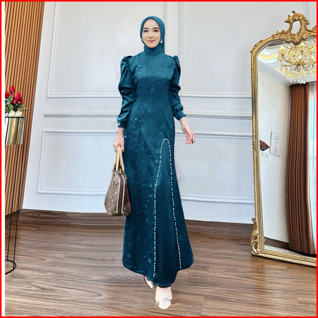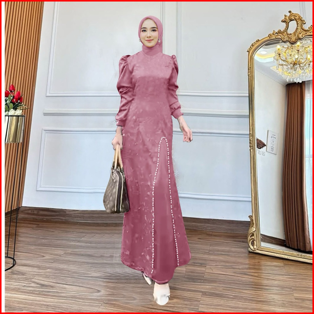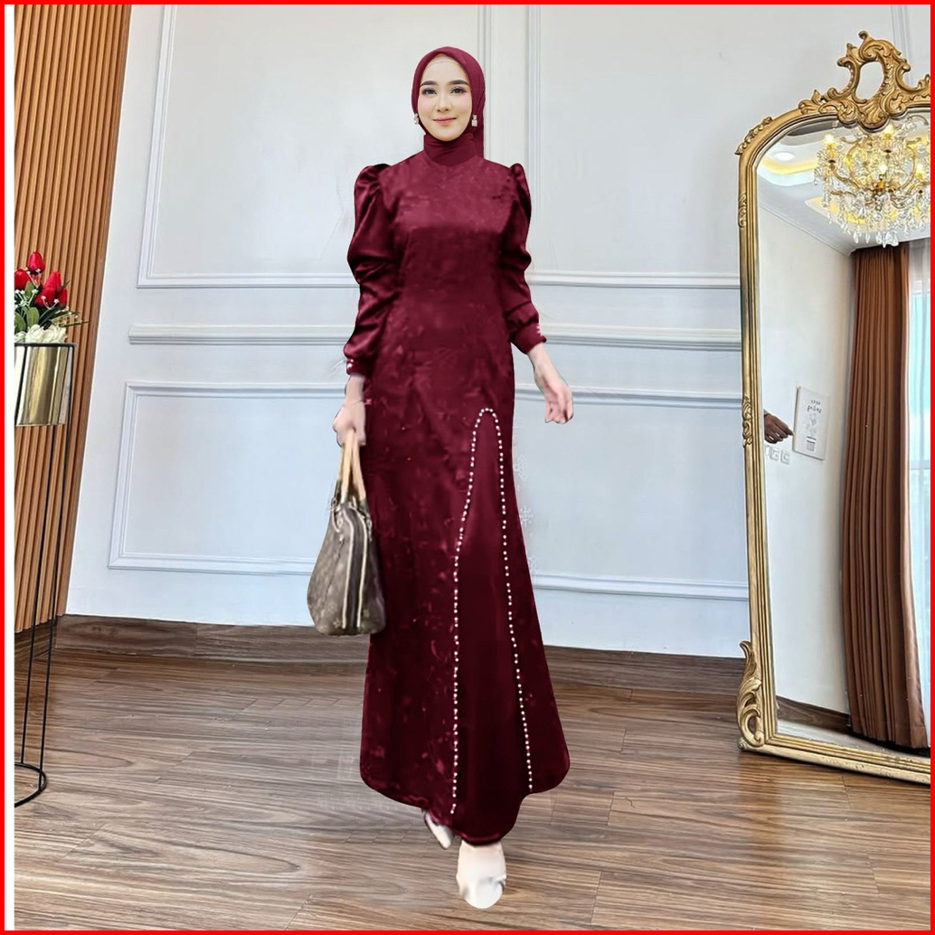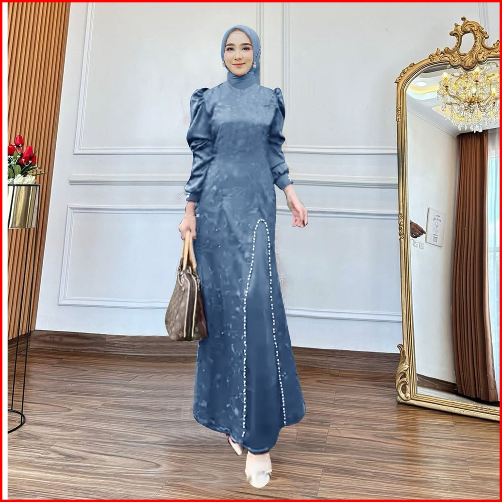 Maxi Naura M L Xl Xxl 3xl Gamis Pesta Model Terbaru Dress Satin Tile Muitara Baju Kondangan Gamis Kondangan