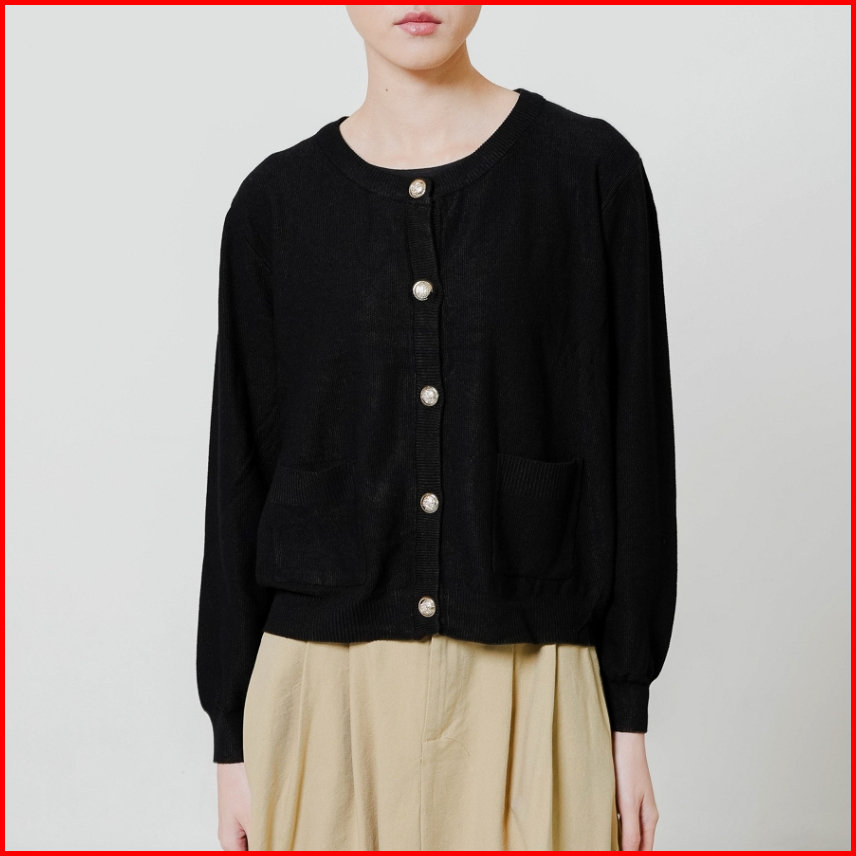 This Is April Baju Atasan Wanita Rajut Lengan Panjang Travi Cardigan Blue Dan Black