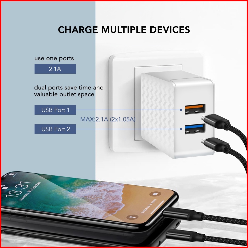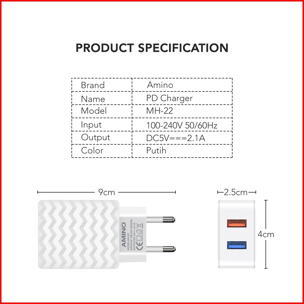 Amino 2 Port Usb Fast Charger 2.1a Micro Usb Quick Charger Adapter Mh-22
