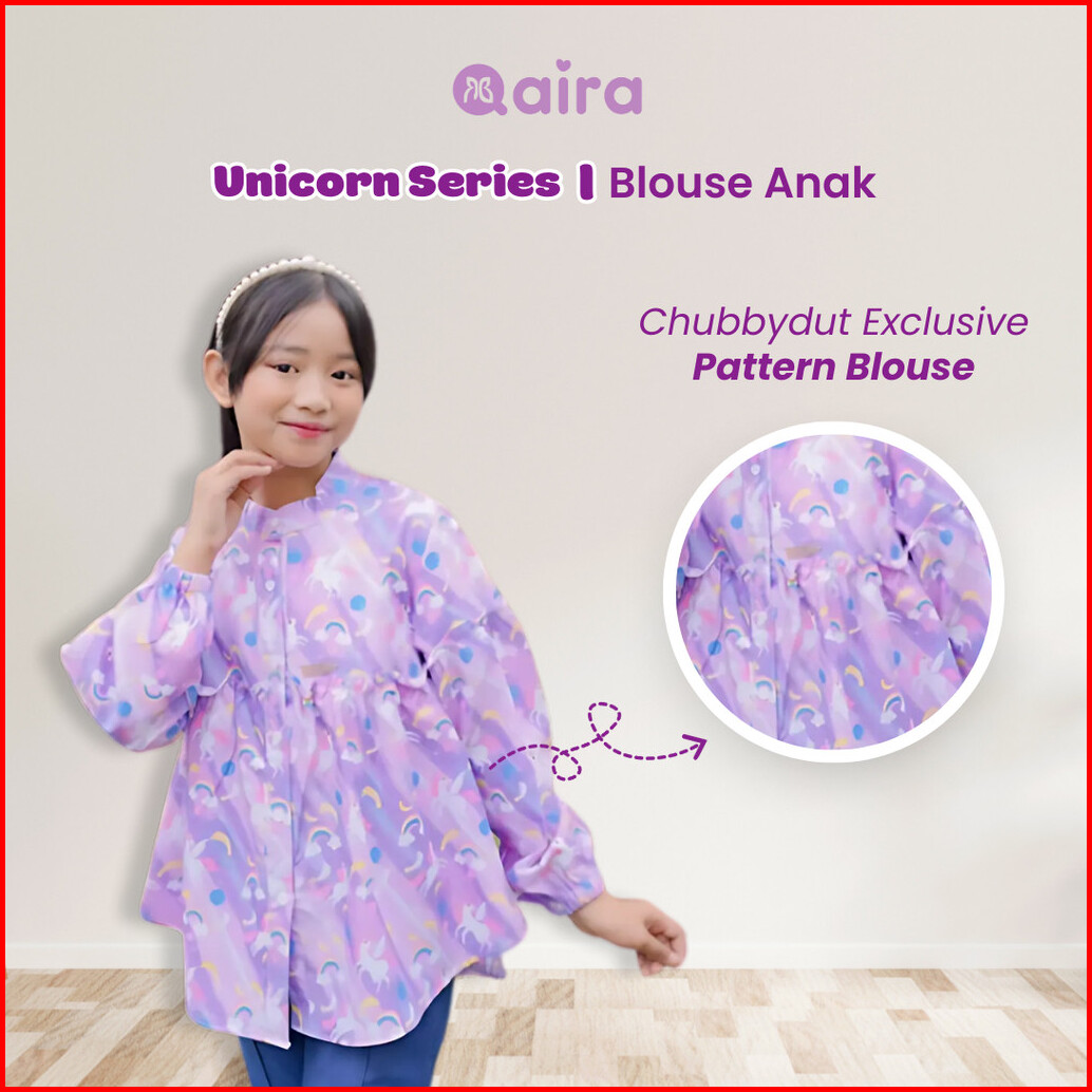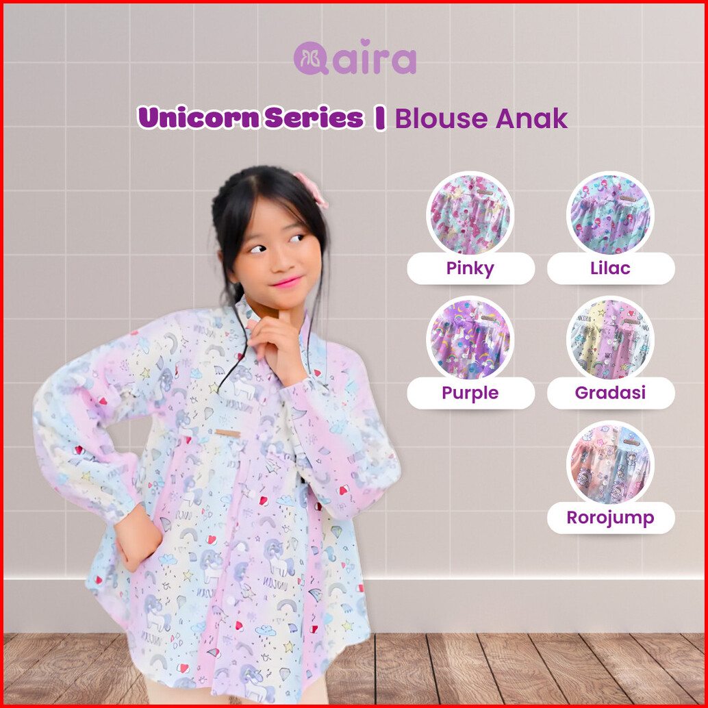 Qaira Blouse Anak Perempuan Katun Lengan Panjang Unicorn Series