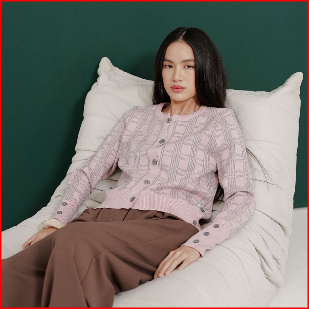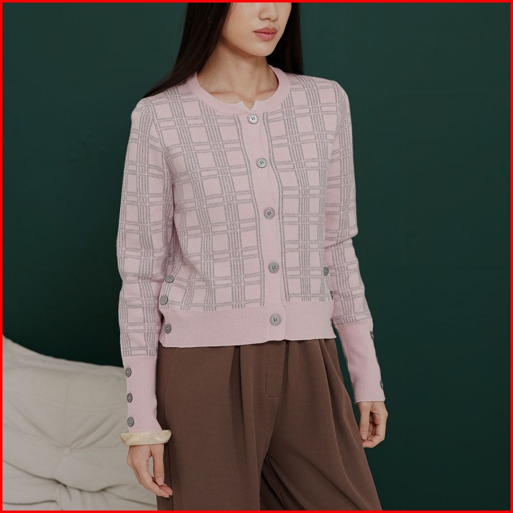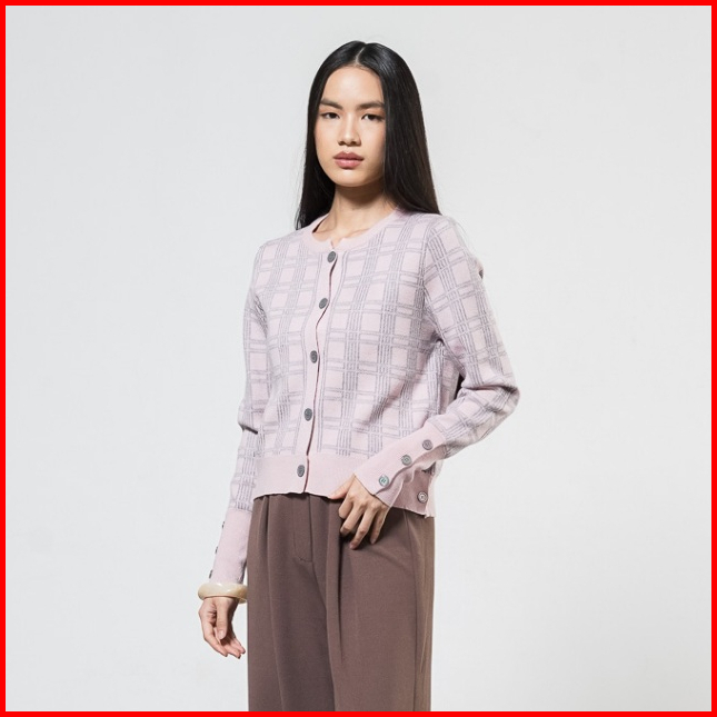 This Is April Baju Atasan Cardigan Rajut Tartan Lengan Panjang Rachel Cardigan Pink 60020500
