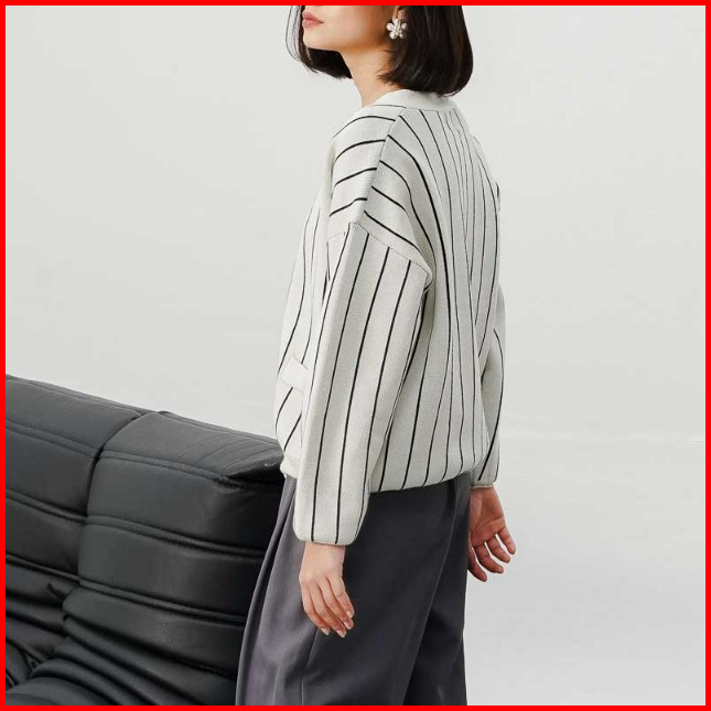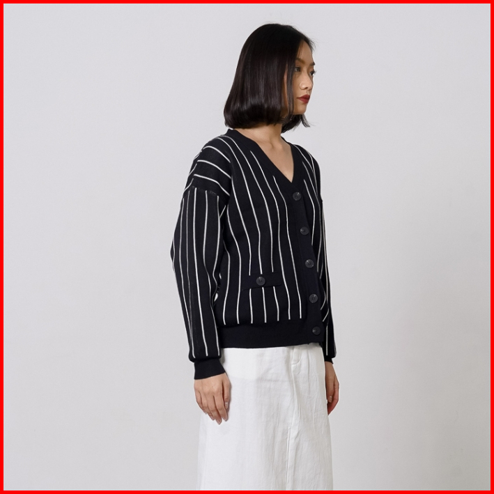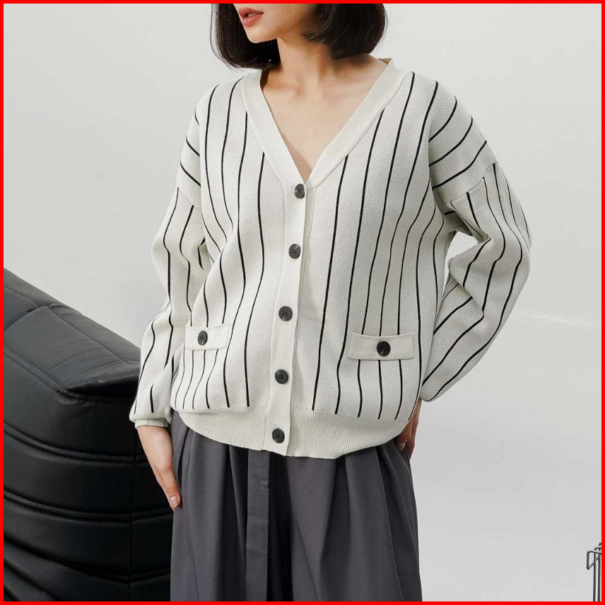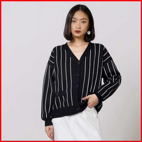 This Is April Baju Atasan Wanita Terbaru Stripe Rajut Oversized Lengan Panjang Oslo Cardigan Black Dan Ivory