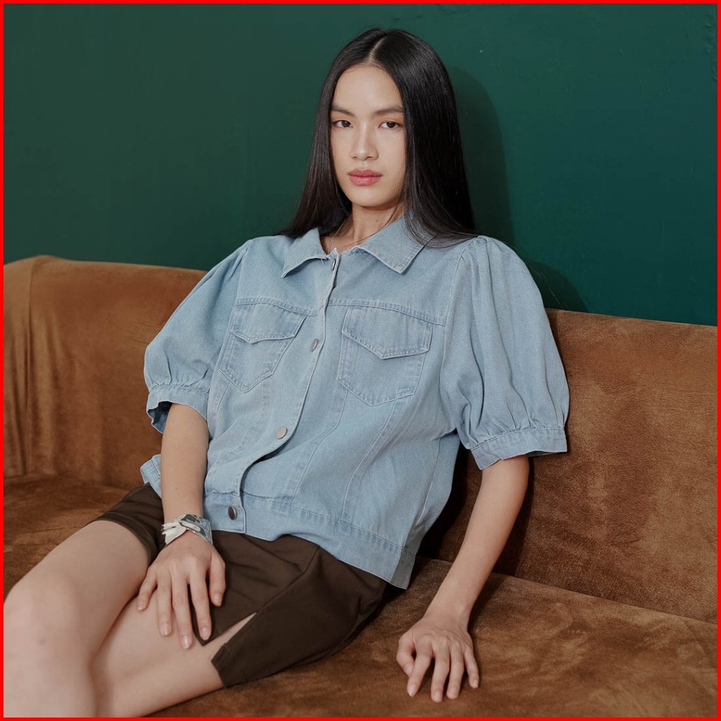 This Is April Baju Atasan Blouse Wanita Kekinian Lengan Pendek Ivy Top Denim 10048200