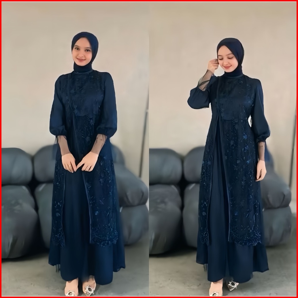 Elika Dress Silk Mix Tille Brukat Gaun Kondangan Busui Friendly Gamis Remaja Maxi Pesta Mewah