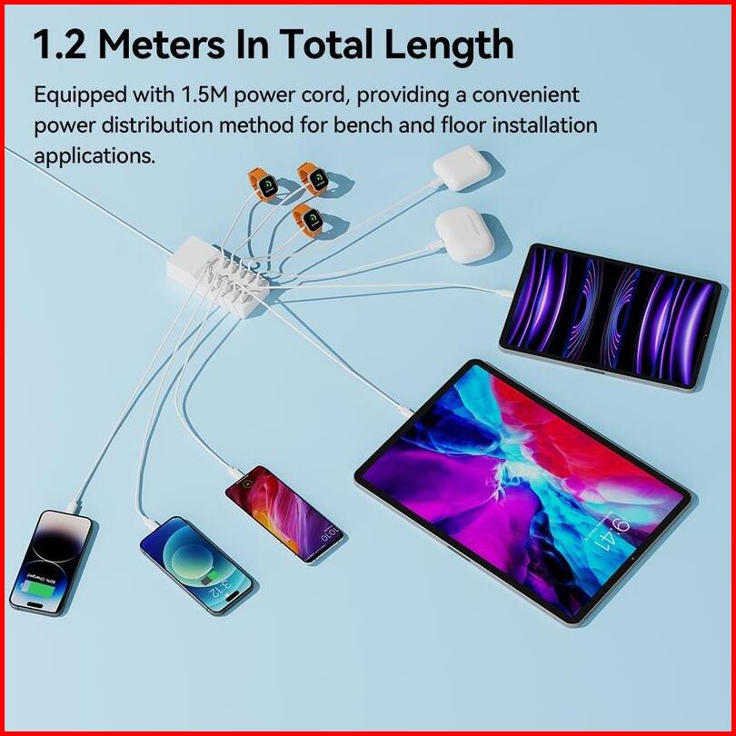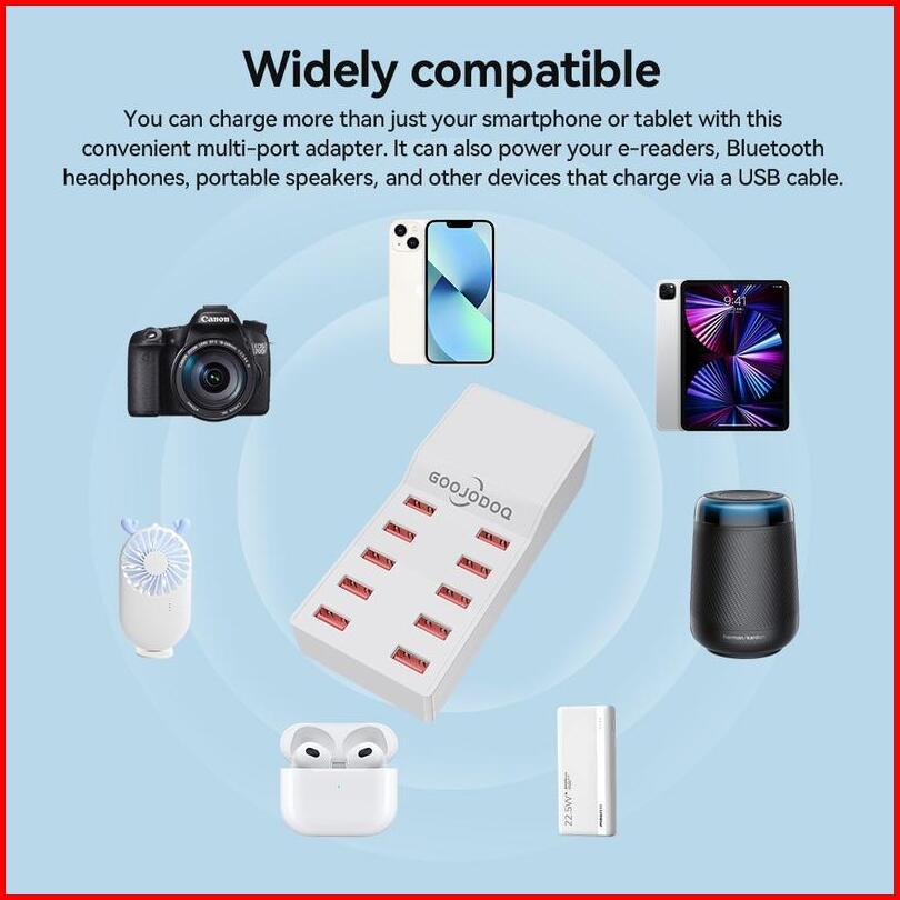 Goojodoq Charger 60w 10 Ports For Iphone Android Quick Usb Charging Station Power Adapter