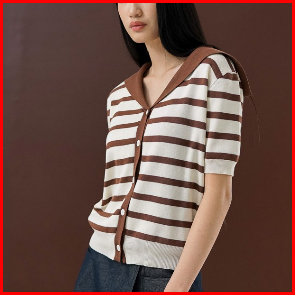 This Is April Baju Atasan Wanita Lengan Pendek Shirt Brenan Cardigan Dark Brown Dan Navy