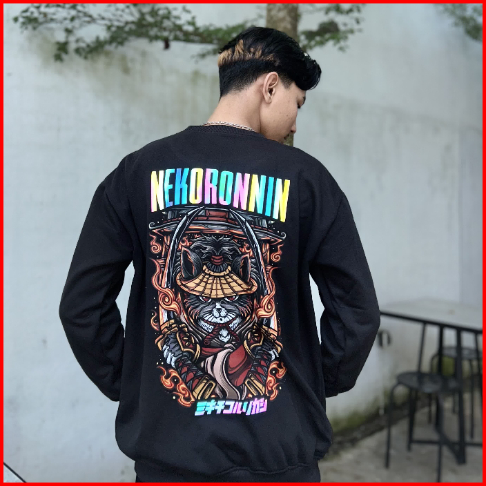 Ngab Crewneck Reflective Rainbow Nekoronnin Hitam Crw001 Fleece Tebal Lembut Dan Nyaman