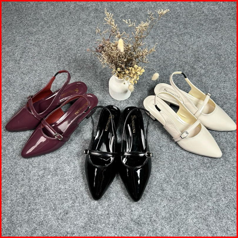 Sandaluna - Sepatu Heels Wanita 3 Cm Elegan Kekinian Terbaru Hak Tahu Sandal Mules Tali Gesper