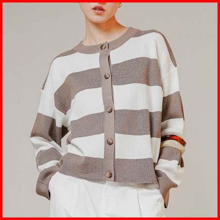 This Is April Atasan Cardigan Knit Wanita Lengan Panjang Theony Knit Top Black Dan Taupe Restock