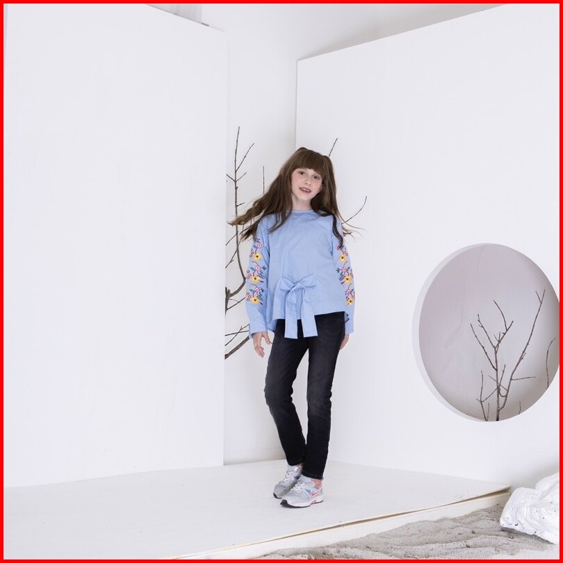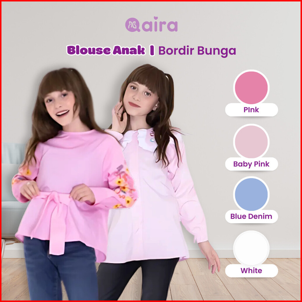 Qaira Blouse Anak Perempuan Katun Korean Style Bordir Bunga Lengan Panjang