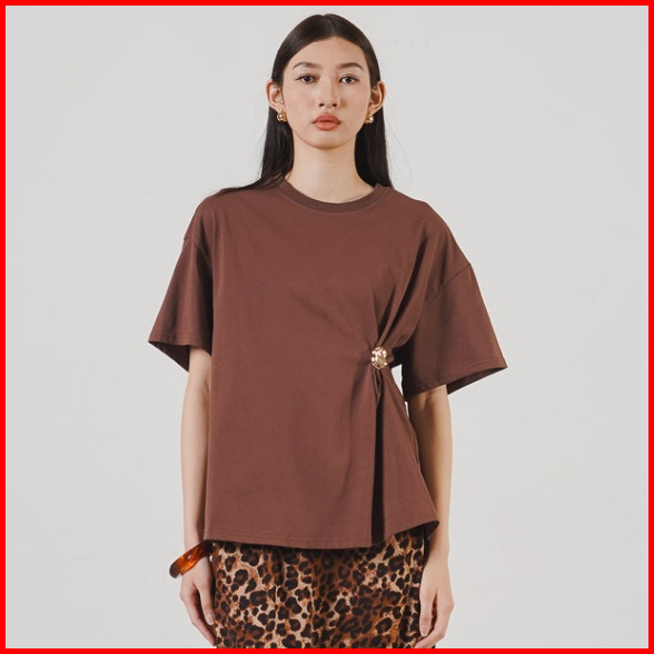 This Is April Atasan Blouse Wanita Lengan Pendek Casual Greta Top Brown Dan Black