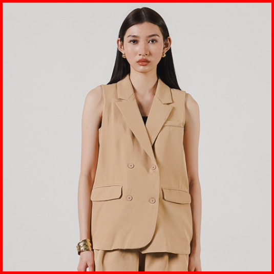 This Is April Baju Atasan Vest Wanita Kekinian Tanpa Lengan Alison Vest Brown Dan White