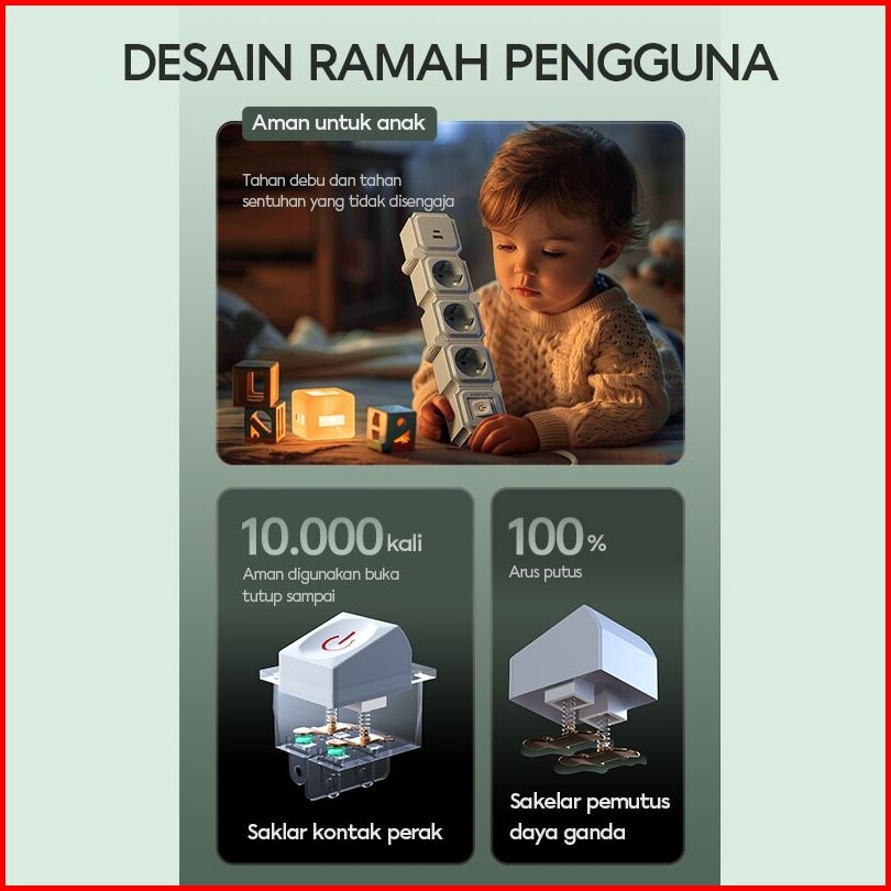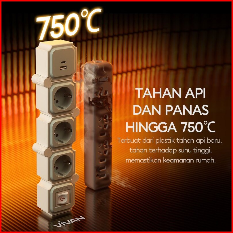 Vivan Safety Socket Stop Kontak Kabel 1.8 Meter Dengan 3-6 Lubang Usb A Type C Adaptor Steker Power Strip Vps-h Pro Seri