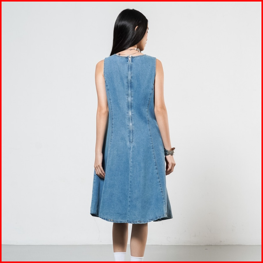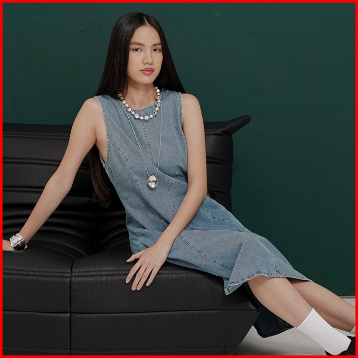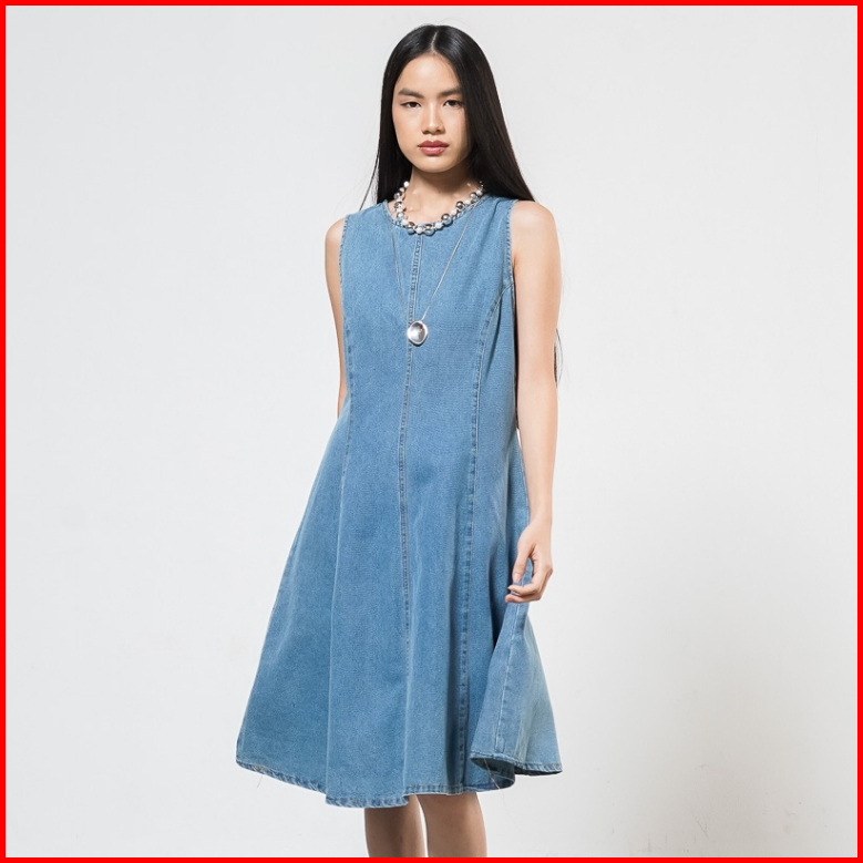 This Is April Gaun Jeans Midi Wanita Terbaru Tanpa Lengan Eloise Dress Denim 70019400