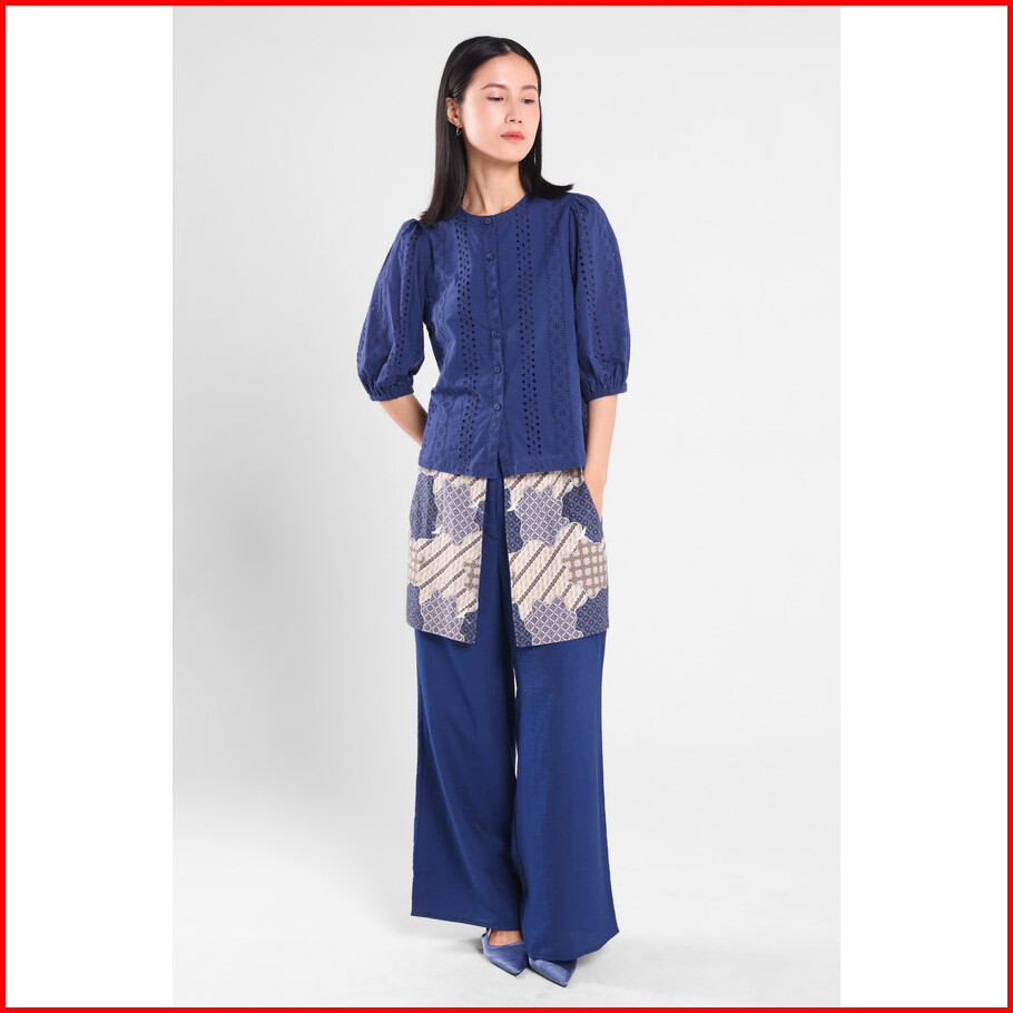 Minimal - Caroline - Blouse Bordir Bunga - Navy