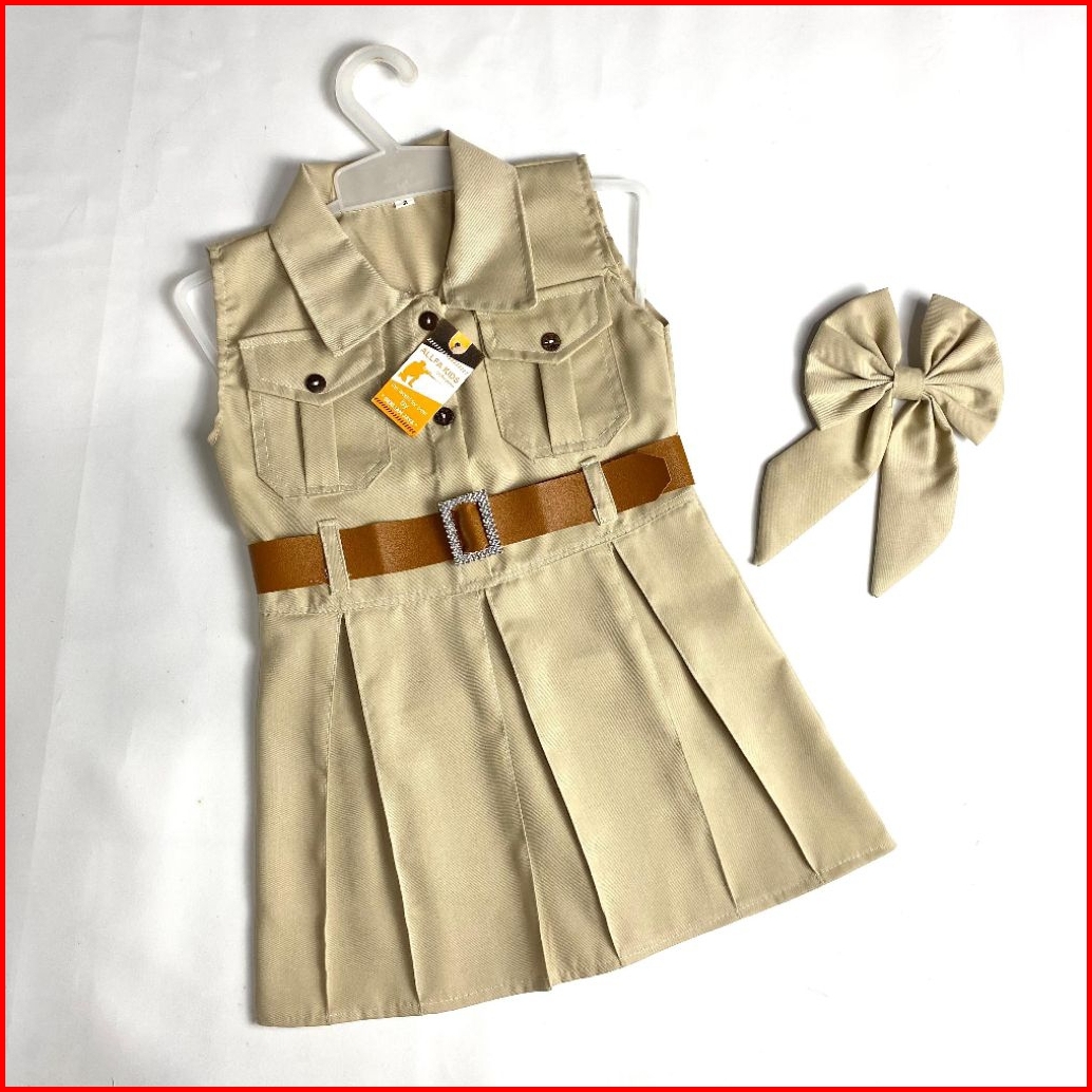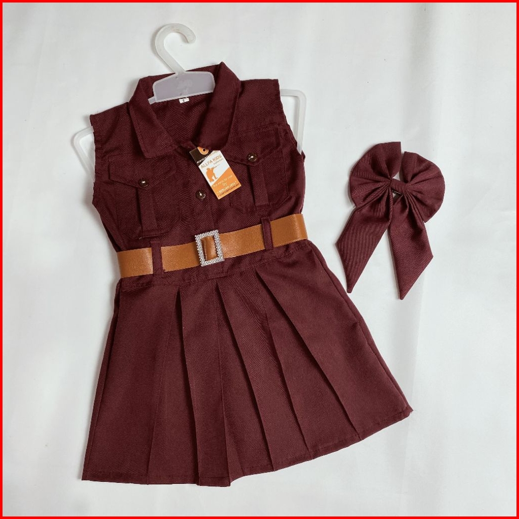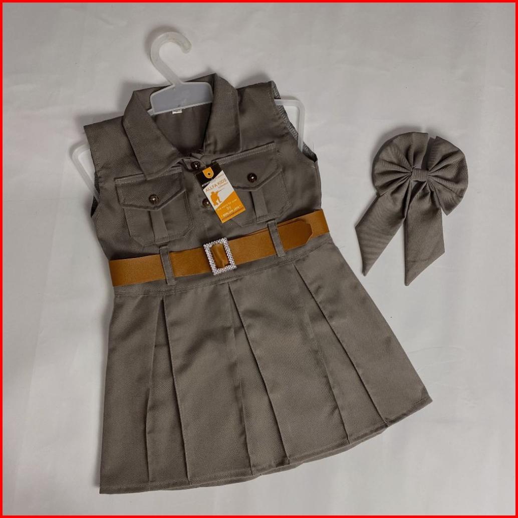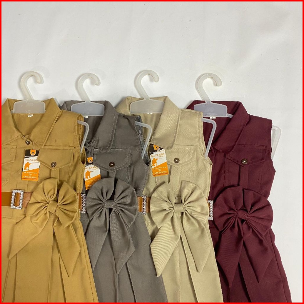 Midi Dres Korean Looks Anak Ii Safea Dress 2-8 Tahun Bahan Amerikan Drill Free Ikat Pinggang