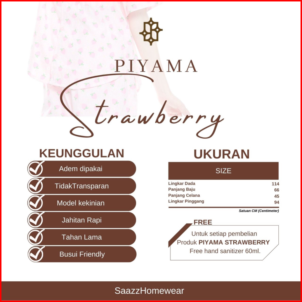 Saazz Piyama Strawberry Set Short Baju Tidur Wanita Kekinian