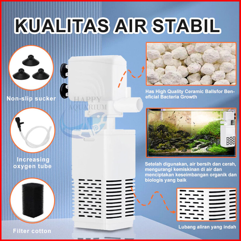 Pompa Aquarium 3in1 - Filter Akuarium Aerator Aquarium Sirkulasi Air Hemat Listrik Mudah Pasang