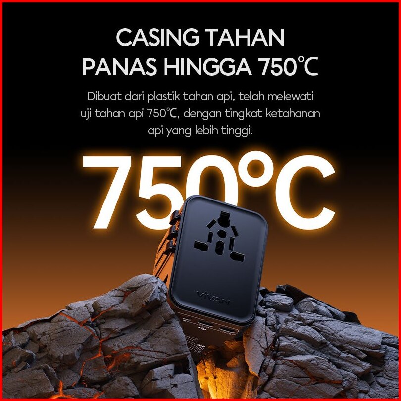 Vivan Universal Travel Adaptor 45w Gan Vps-t003a Pro-s Usb Type-c Multi-country Sni Garansi 36 Bulan
