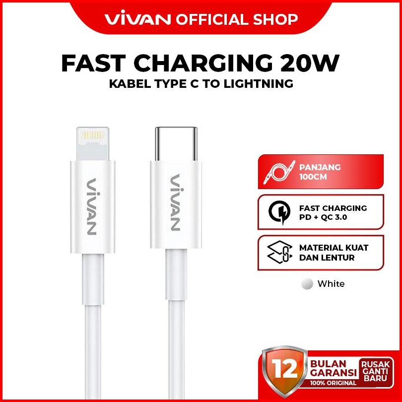 Vivan Kabel Type C To Lightning For Iphone 20w Fast Charging Qc Pd 3.0 Kcl100s Garansi 12 Bulan
