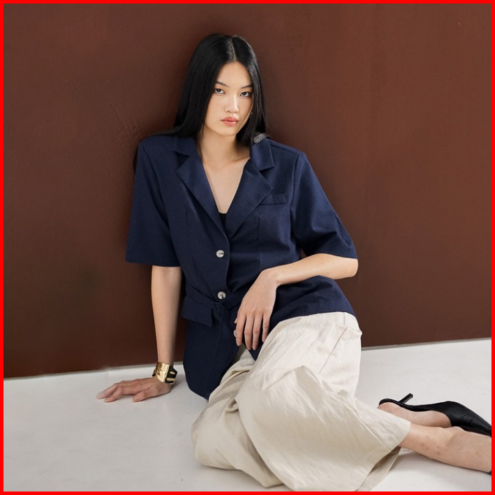 This Is April Baju Atasan Wanita Terbaru Lengan Pendek Outer Office Look Timeless Yeri Blazer Navy 60017500