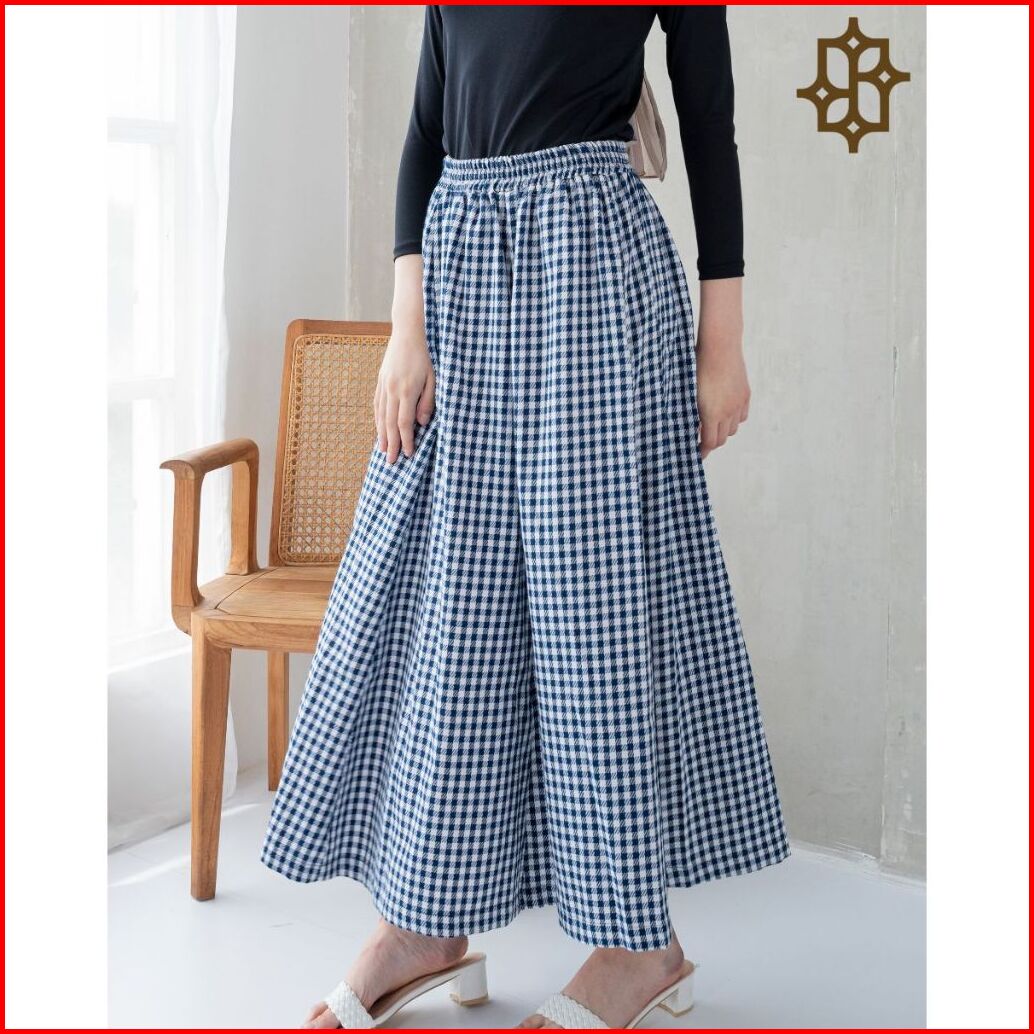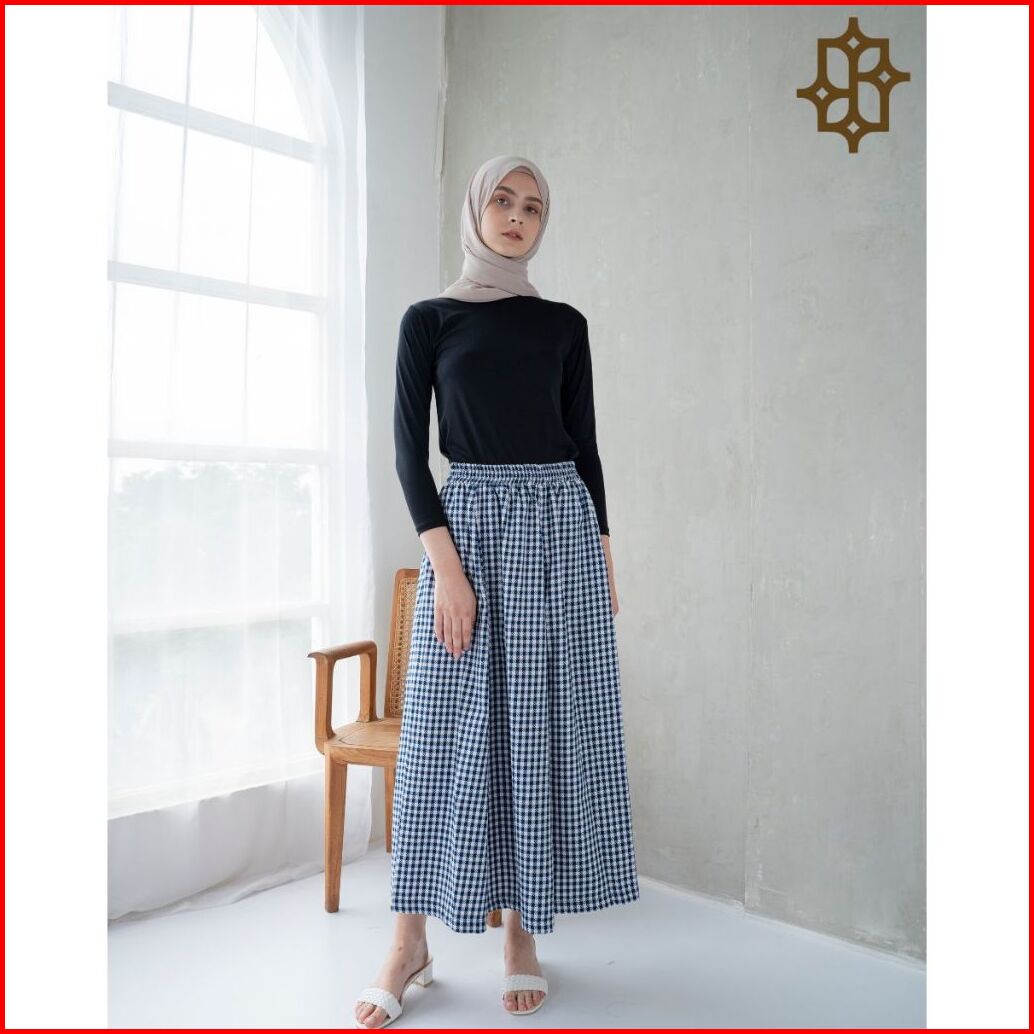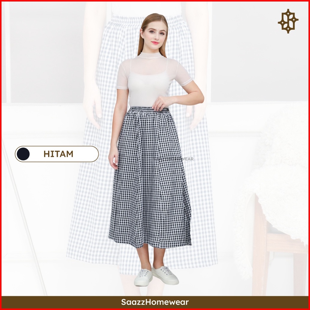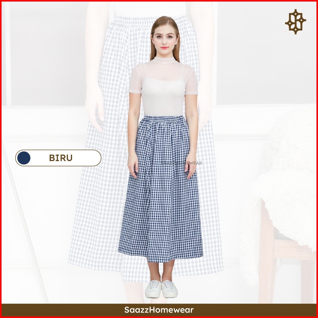 Saazz Rihana Long Skirt Kotak Kotak Bawahan Wanita Style Kekinian