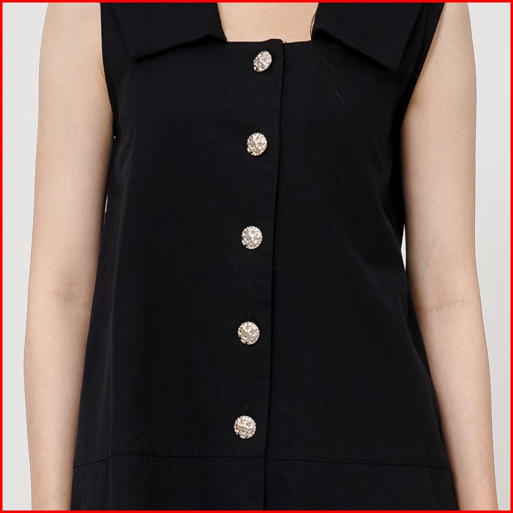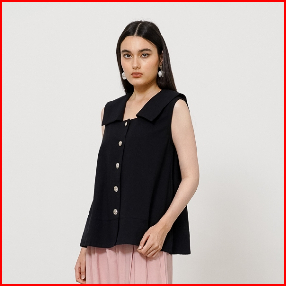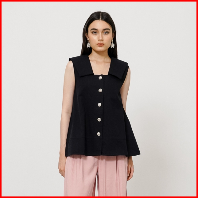 This Is April Baju Atasan Wanita Casual Tanpa Lengan Square Neck Hanami Top Black 10032400