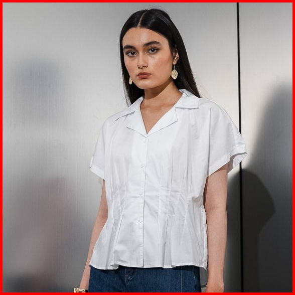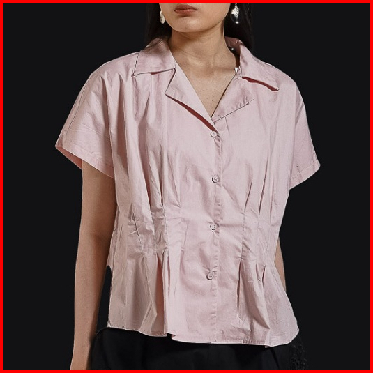 This Is April Atasan Baju Kemeja Wanita Kekinian Lengan Pendek Faye Top White Dan Pink