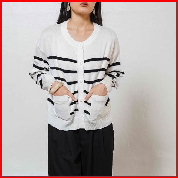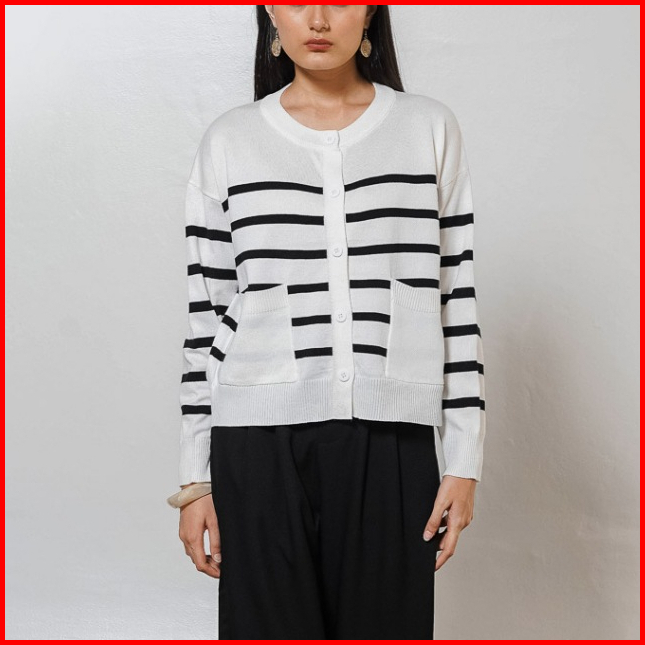 This Is April Baju Atasan Wanita Kekinian Knitwear Lengan Panjang Zio Sweater Black And White