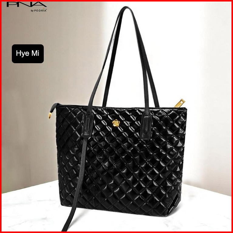 Peonia Pna Hyemi Tote Bag Tas Import Besar Kondangan Wanita Korea Pesta Style Kulit Resleting Selempang Bahu Kantor Kerj