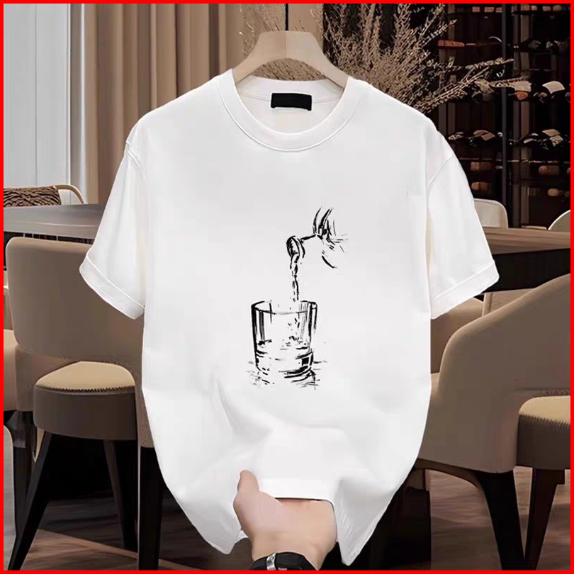 Kaos Motif Menyiram Minuman Katun Berkualitas Nyaman Bernapas Loose Fit