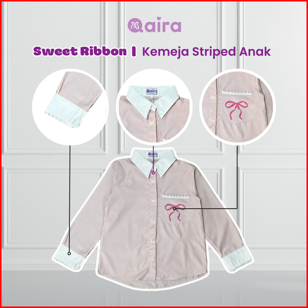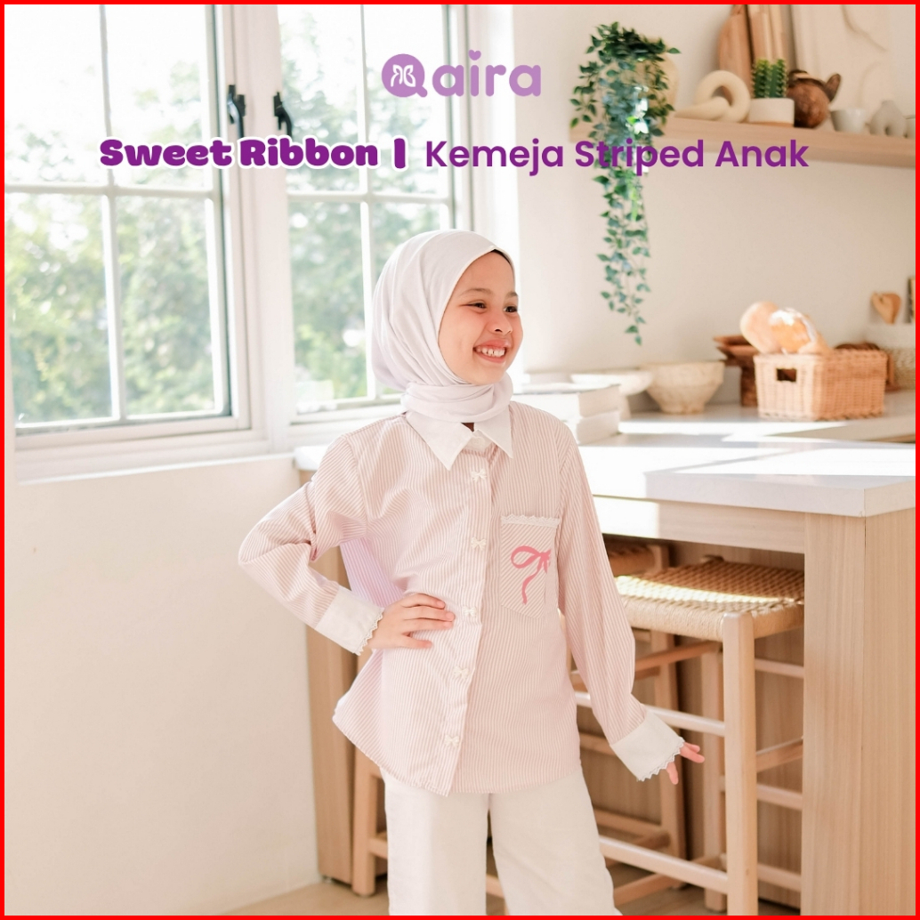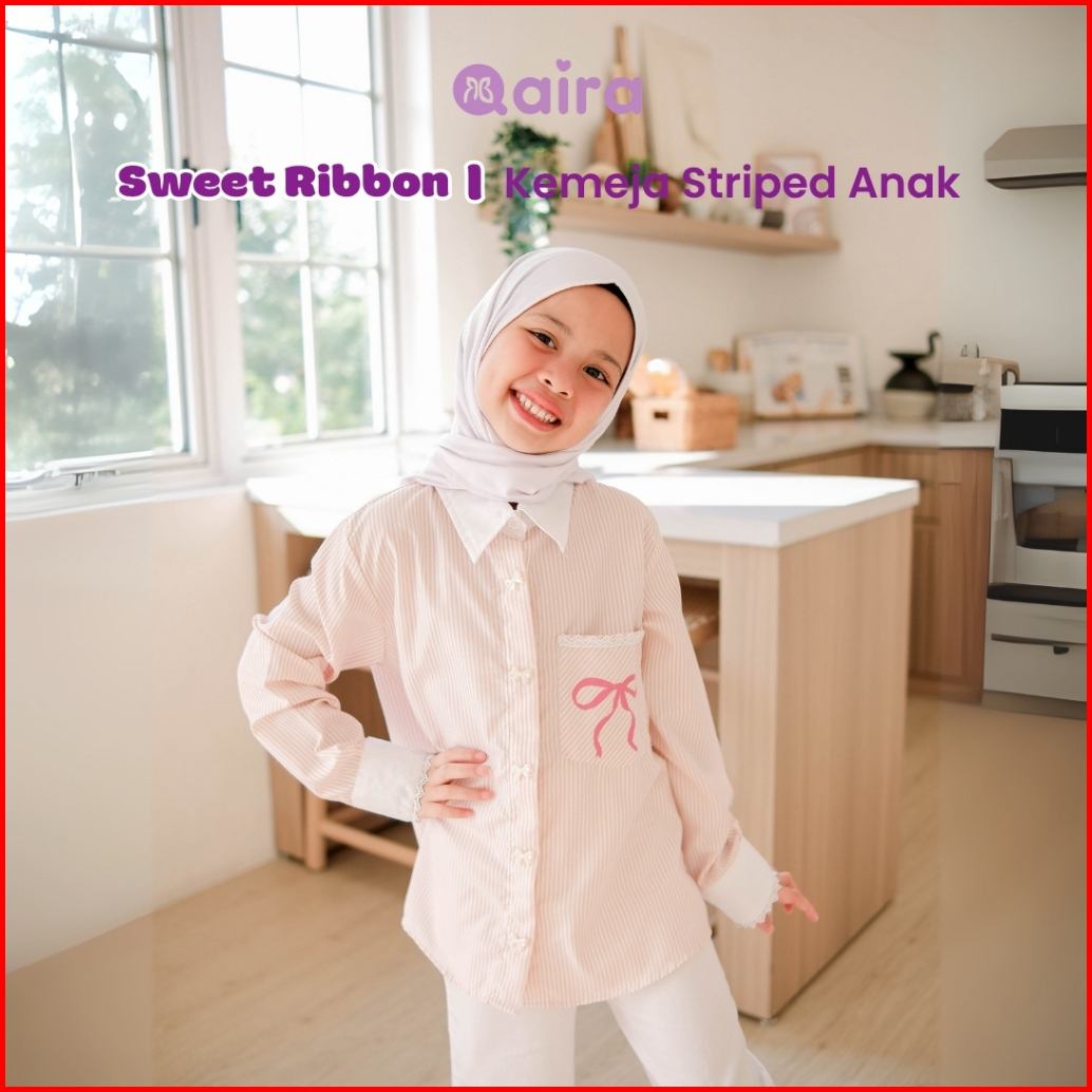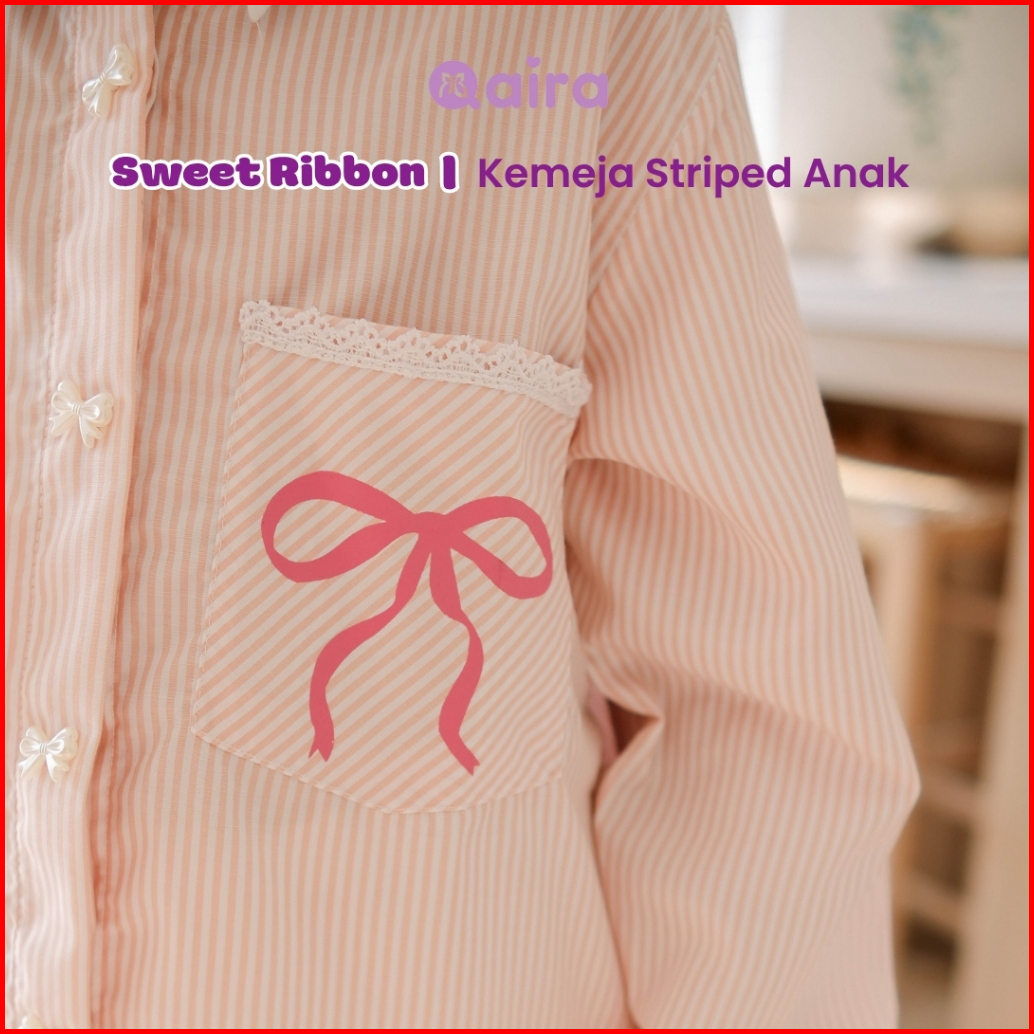 Qaira Kemeja Anak Perempuan Striped Sweet Ribbon Series