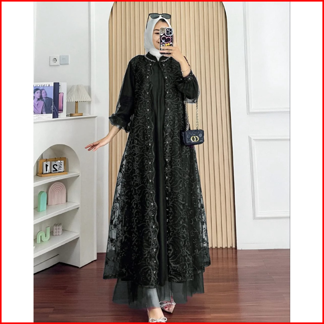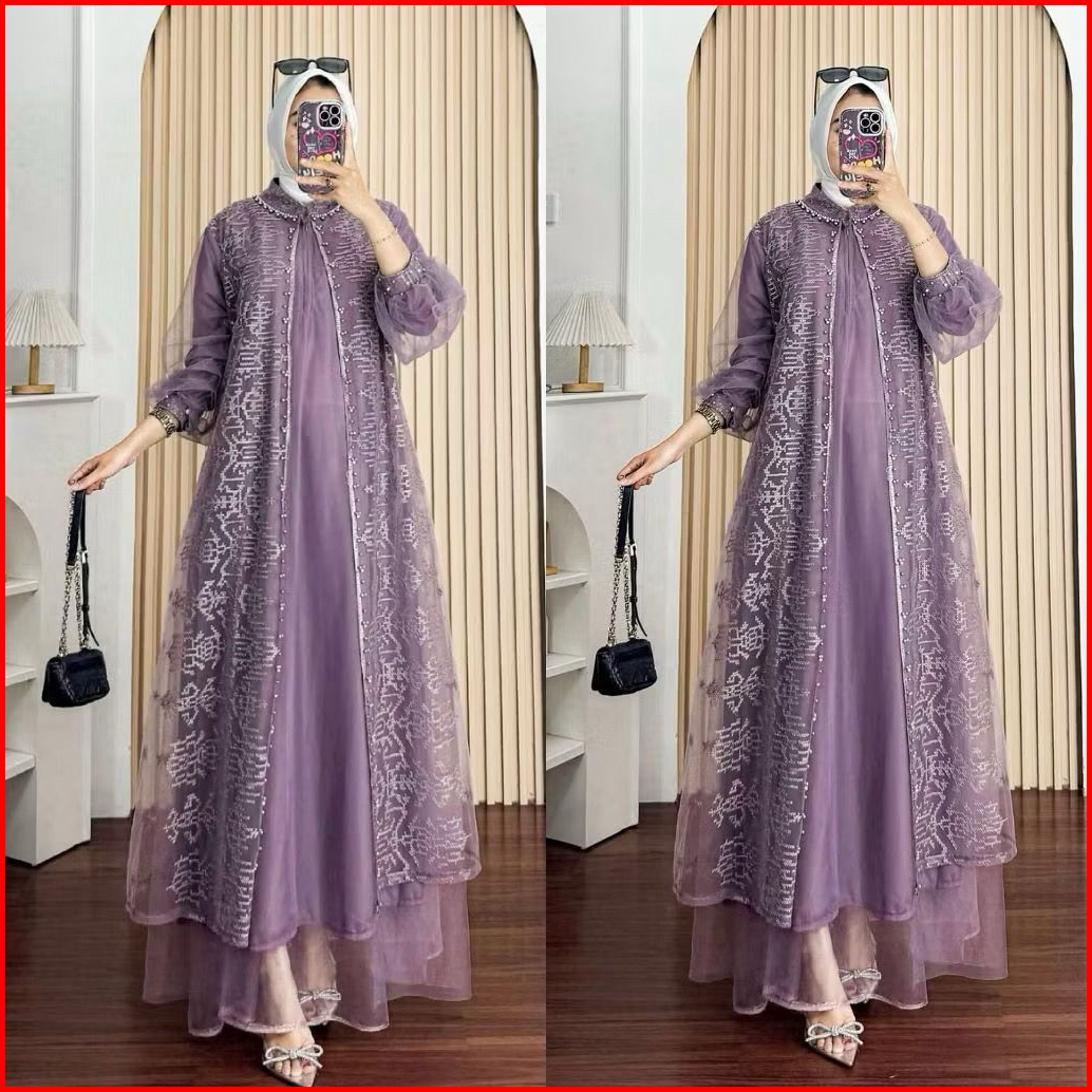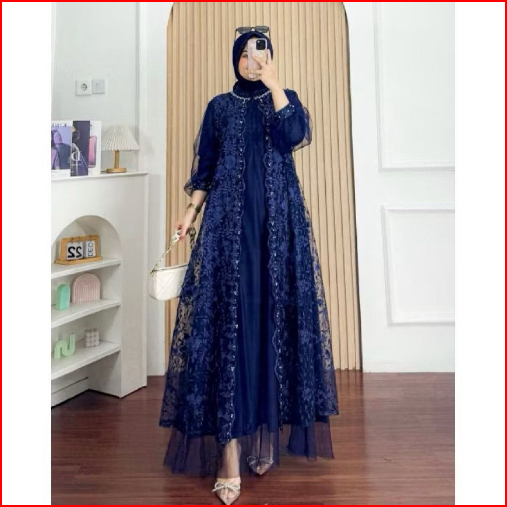 Nadine Dress Pesta Kondangan Terbaru Bahan Tille Mix Brukat Gamis Wanita Muslim Terbaru Kekinian