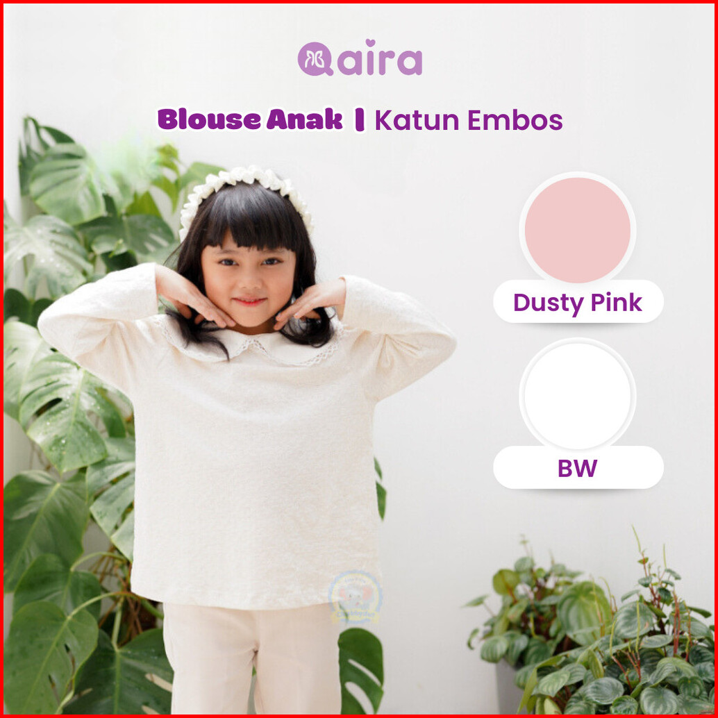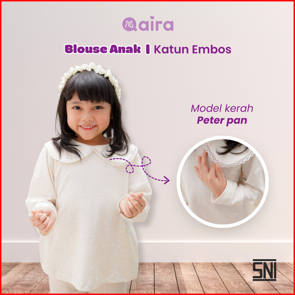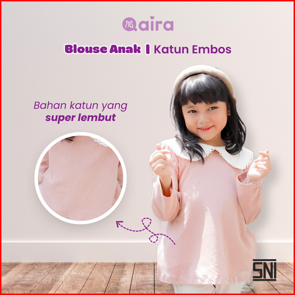 Qaira Blouse Anak Perempuan Katun Embos Atasan Lengan Panjang