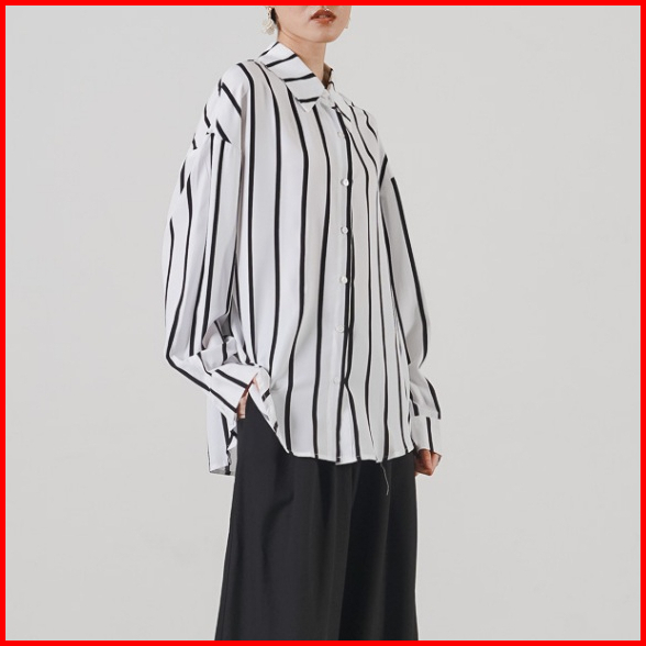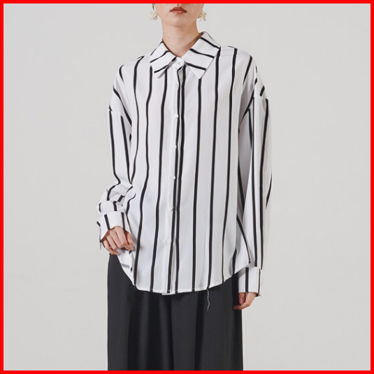 This Is April Atasan Kemeja Wanita Kekinian Lengan Panjang Stripped Judith Top White 10061000