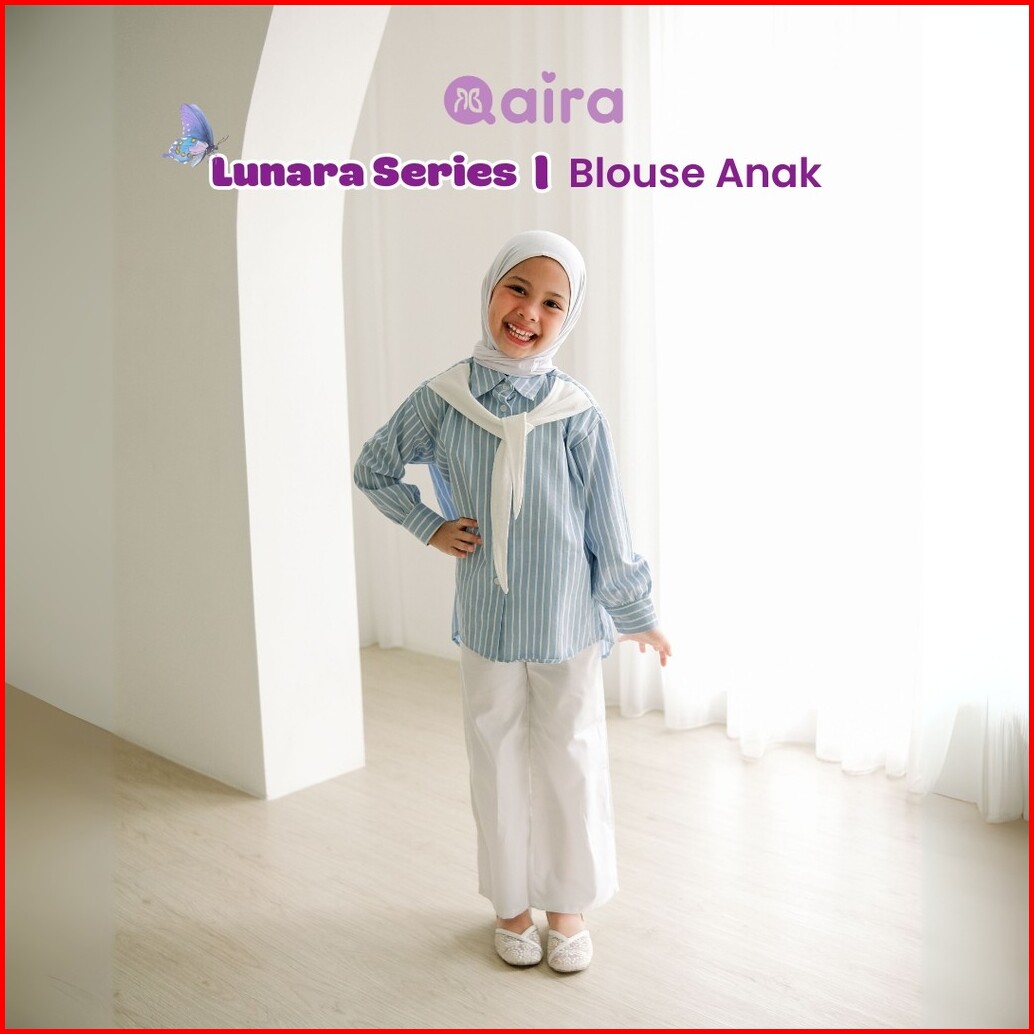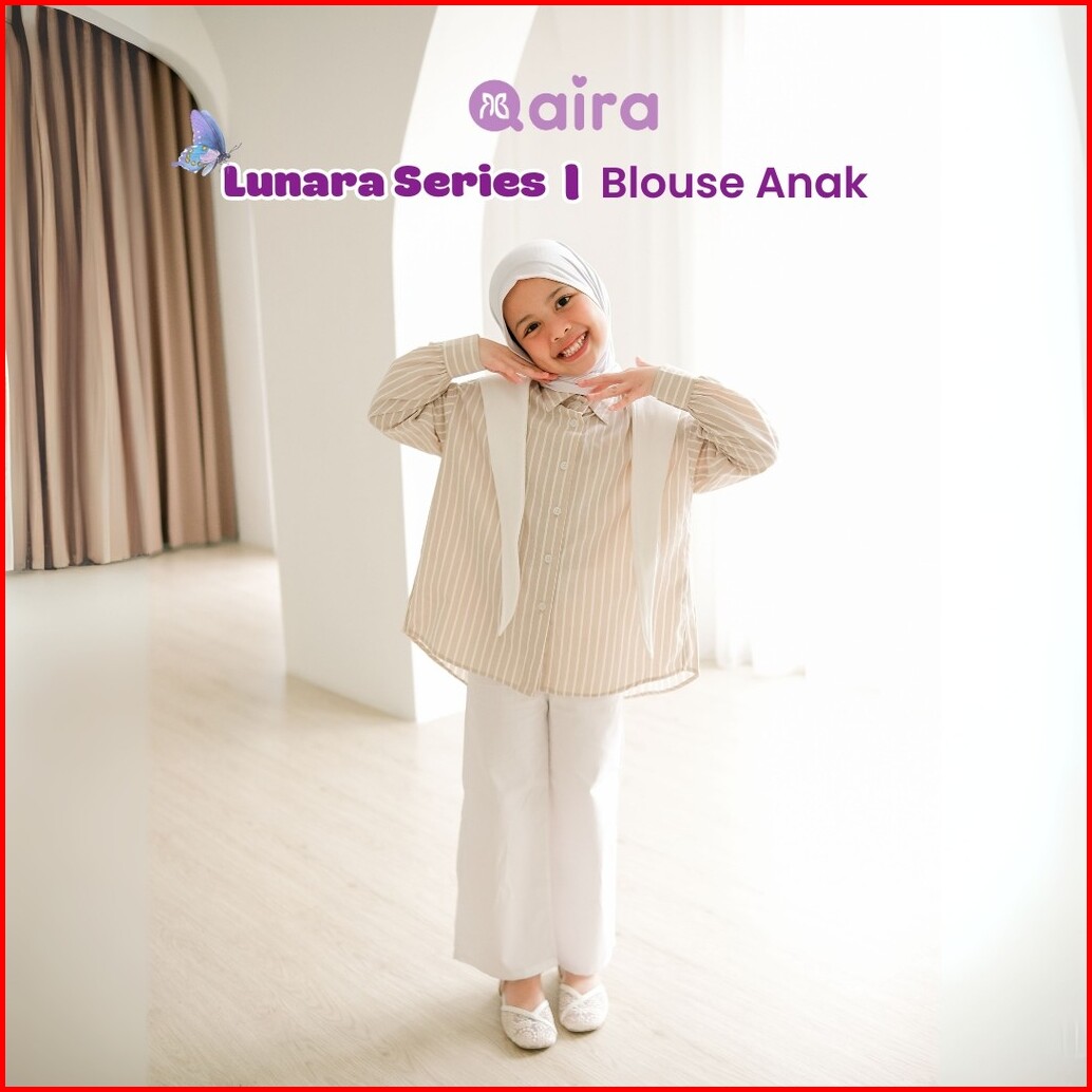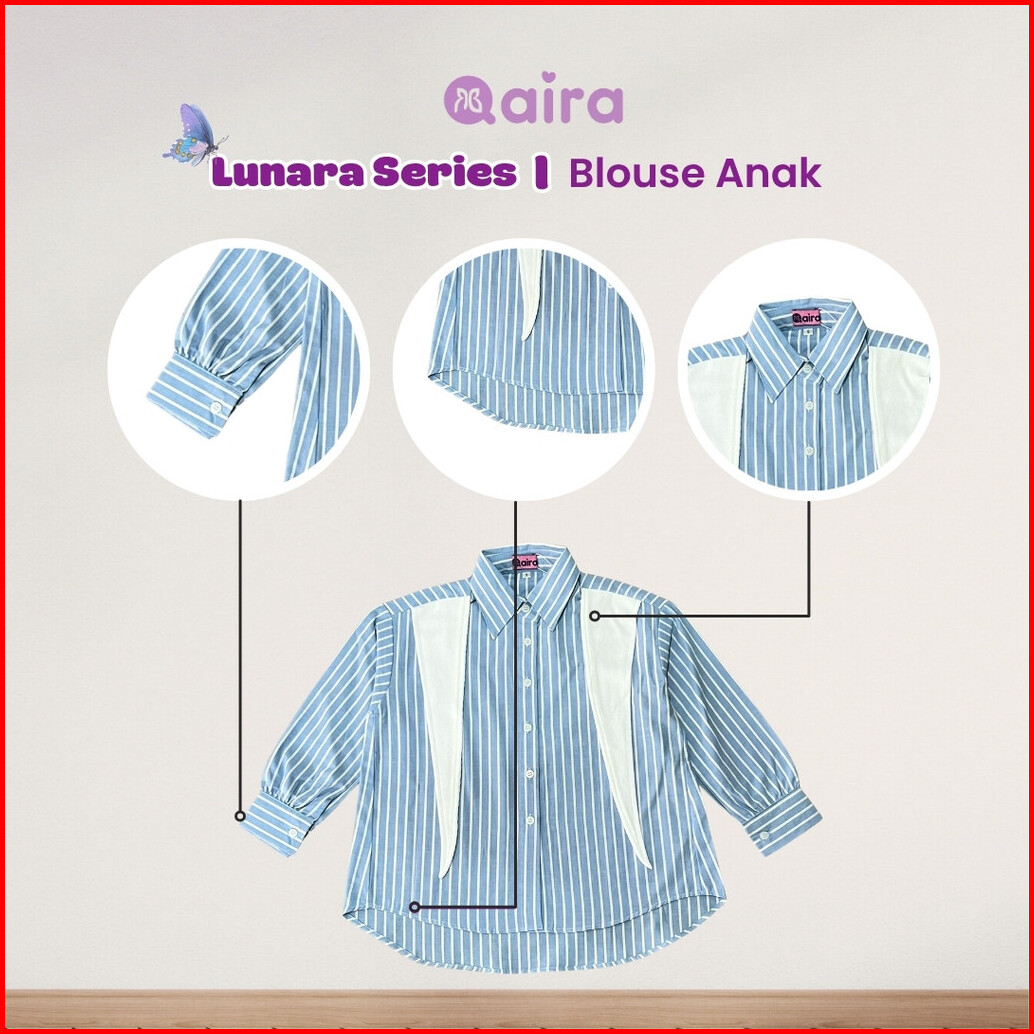 Qaira Kemeja Anak Perempuan Dasi Knit Striped Lunara Series