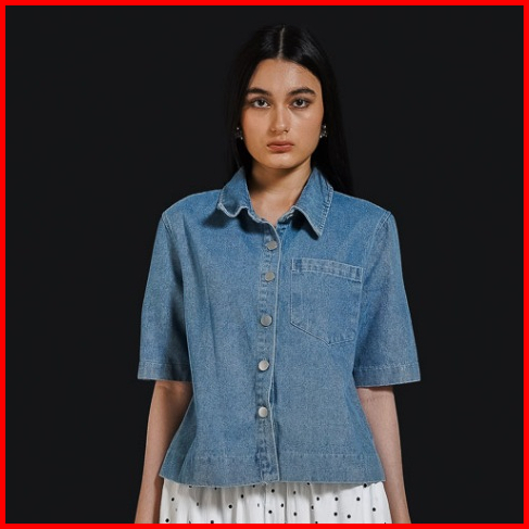 This Is April Baju Atasan Jeans Wanita Lengan Pendek Amber Top Denim 10049400