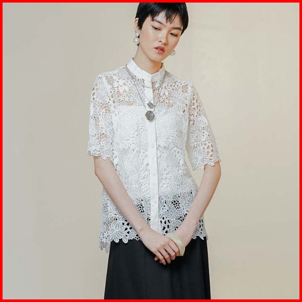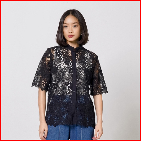 This Is April Kemeja Crochet Wanita Lengan Pendek Stylish Calendula Top Black Dan White