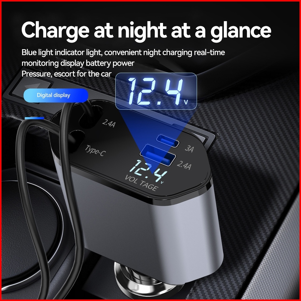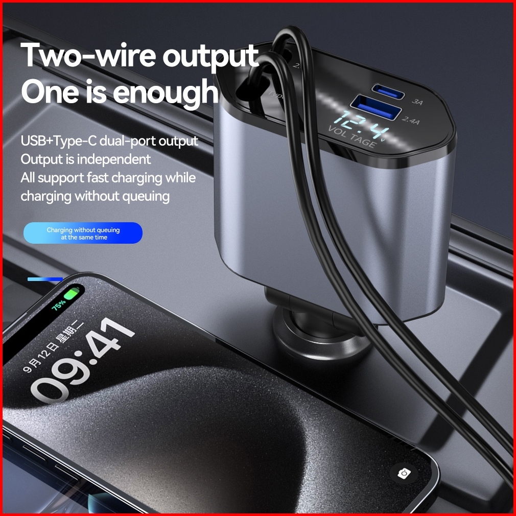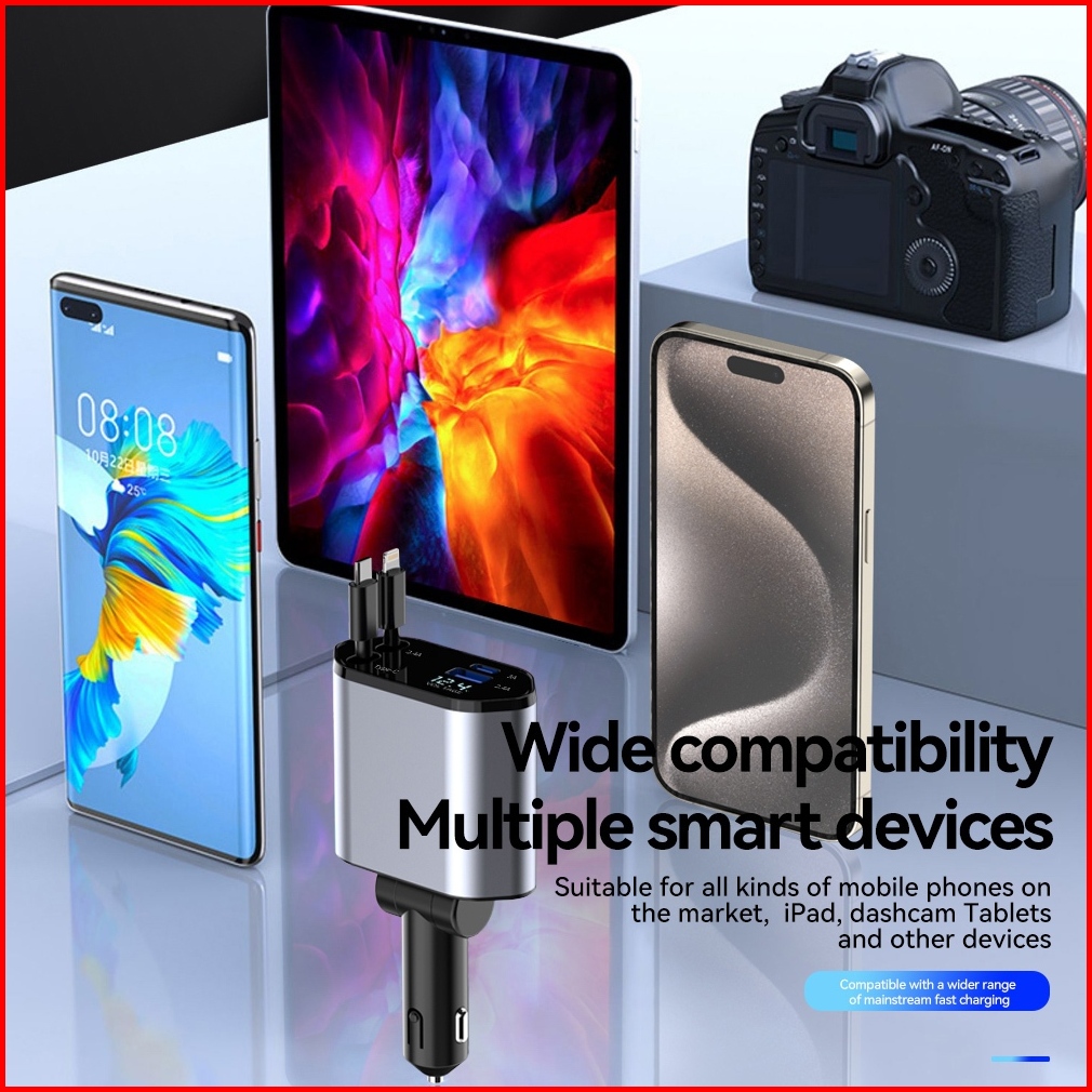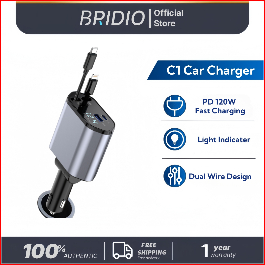 Bridio C1 Car Charger 120w Fast Charging 4in1 Dengan Kabel Retractable Port Type C Lightning Garansi 1 Tahun