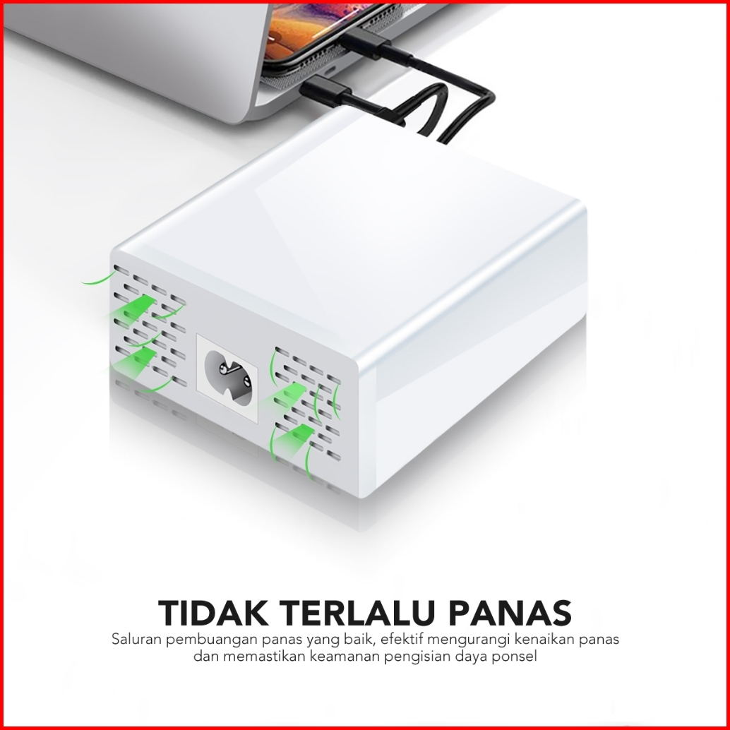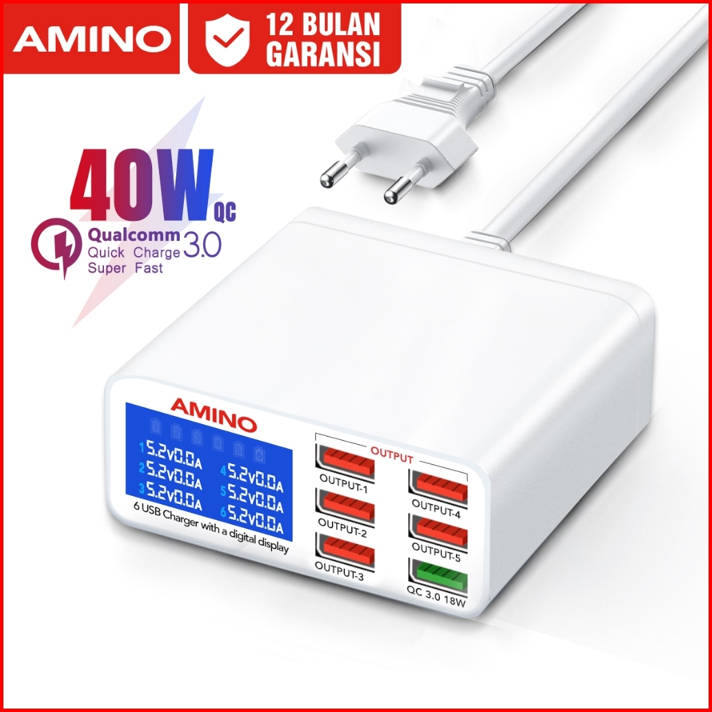 Amino 40w 6 Usb Port Multi Port Charger Qc 3.0 Fast Charger Led Function Adaptor Power Kabel