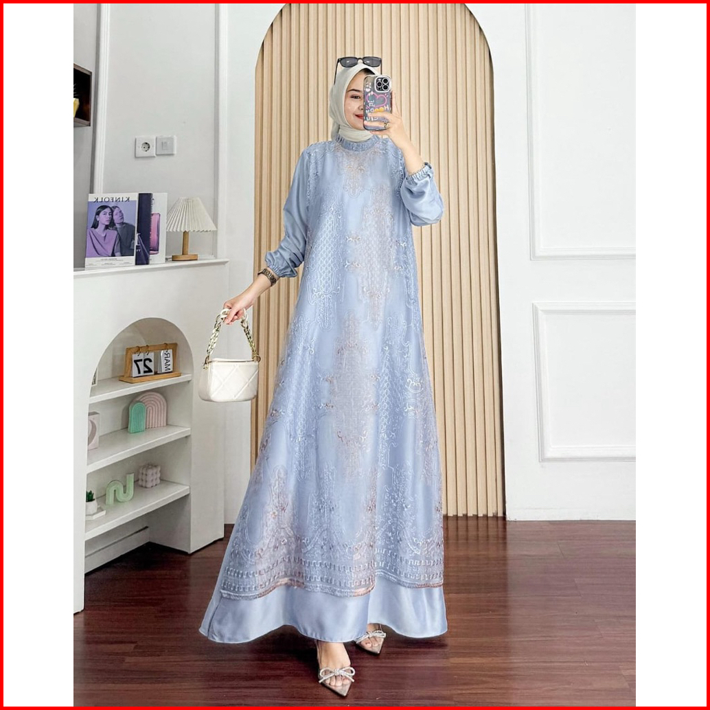 Amella Dress Gamis Brukat Mewah Bahan Velvet Silk Premium Dress Wanita Pesta Kondangan Terbaru Viral