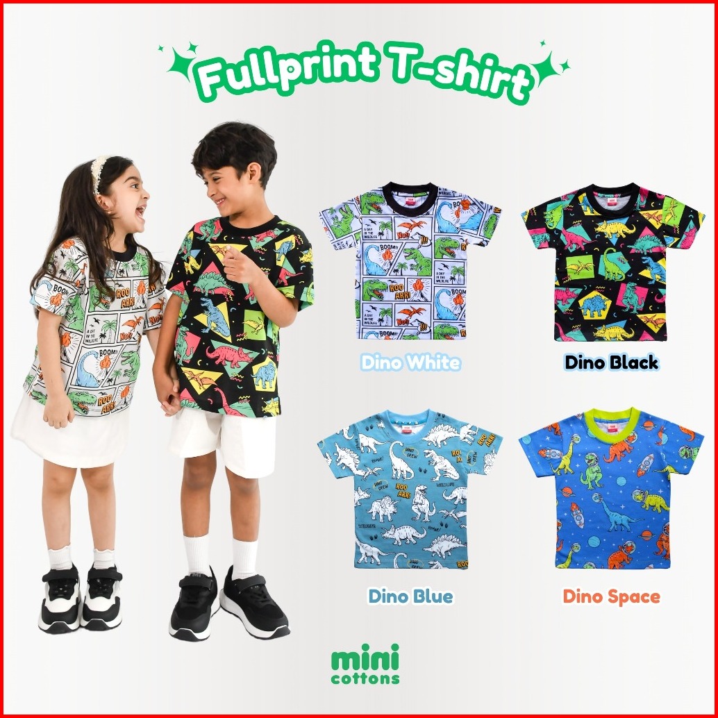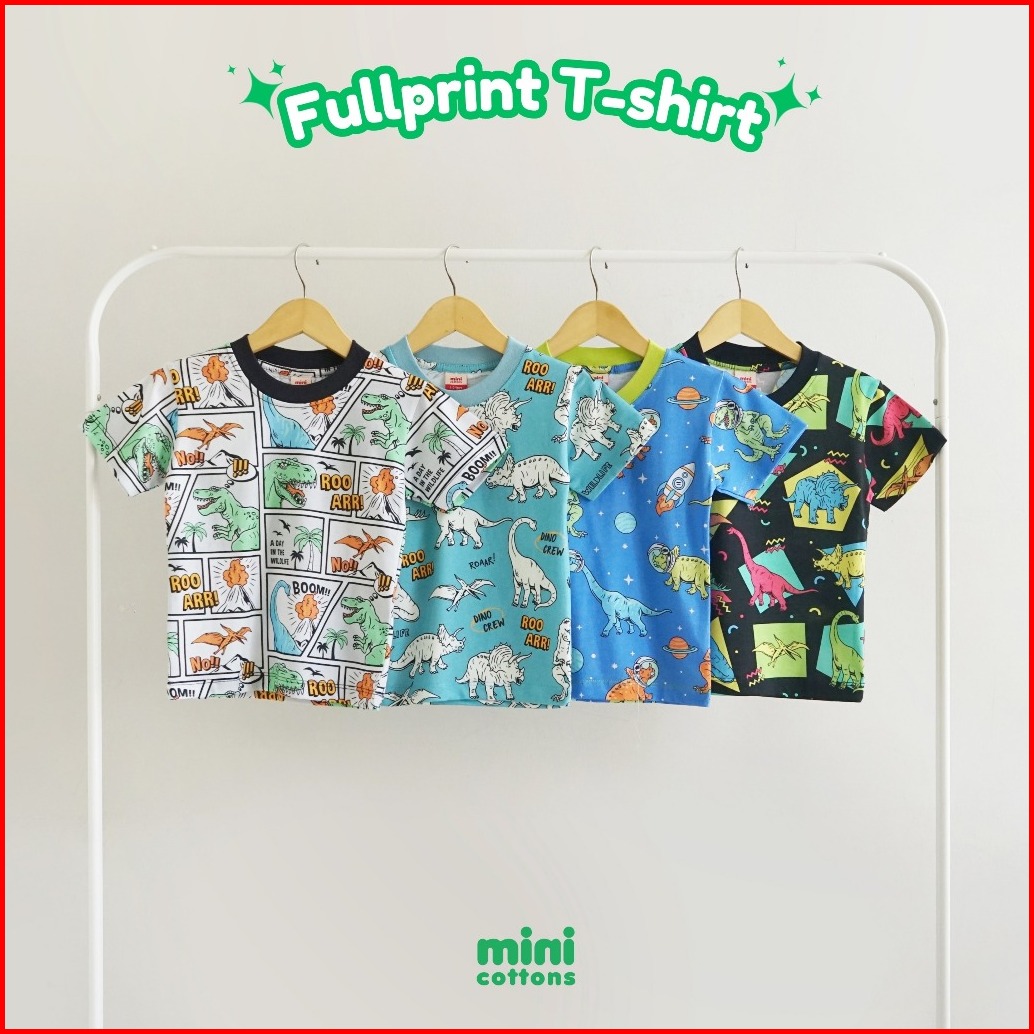 Mini Cottons Kaos Anak Dino Fullprint Kids Tshirt 100 Katun 1-12 Tahun