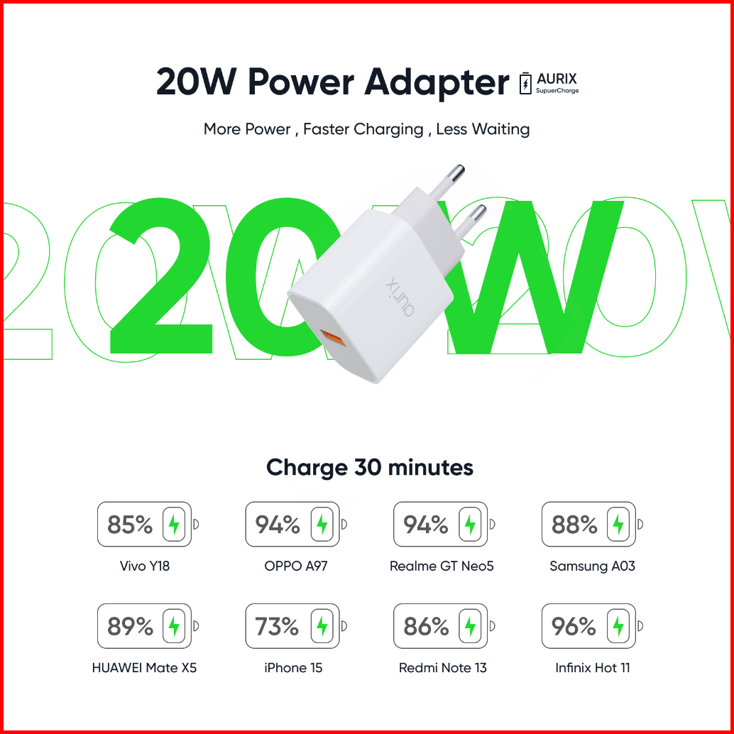 Aurix Charger Pd 20w Fast Charging Type C Lightning Micro - Garansi Resmi 1 Tahun