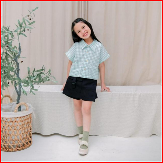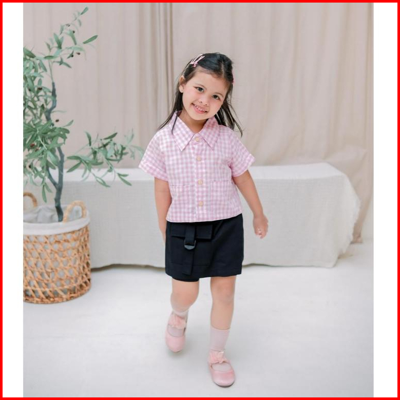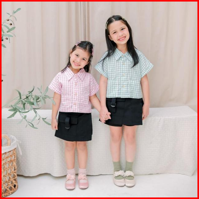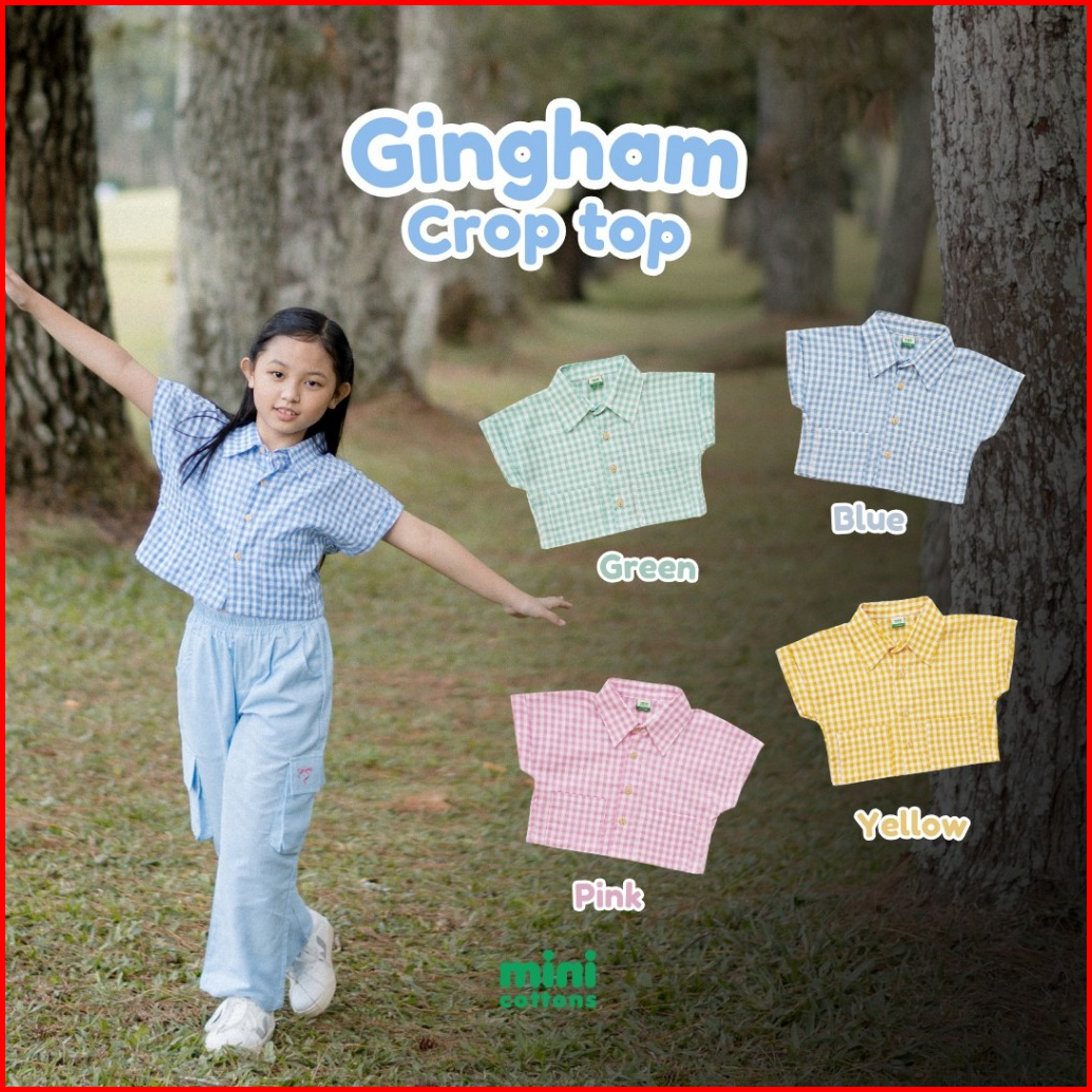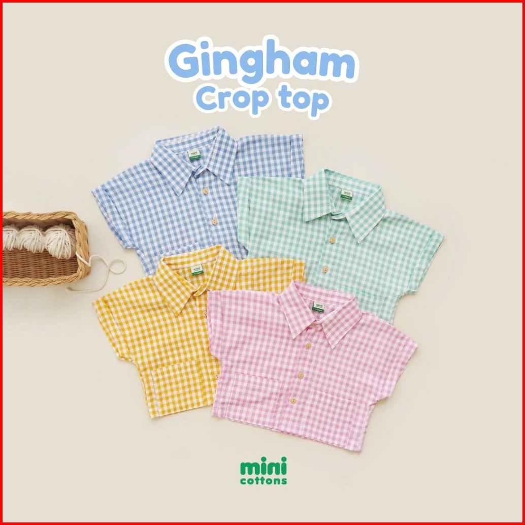 Mini Cottons Kemeja Gingham Crop Top Baju Anak Perempuan 1-12 Tahun 100 Katun