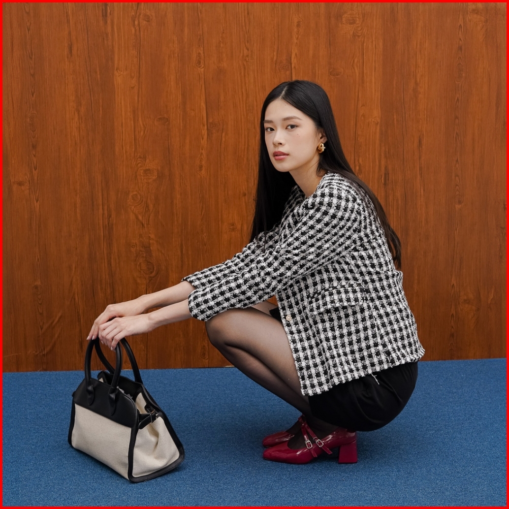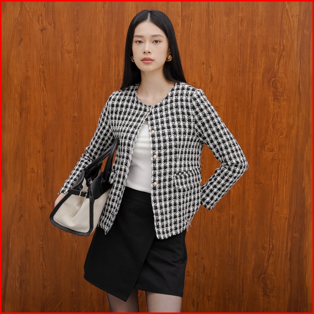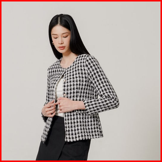 This Is April Baju Atasan Blouse Wanita Lengan Panjang Tweed Kekinian Rose Top Black 10106800