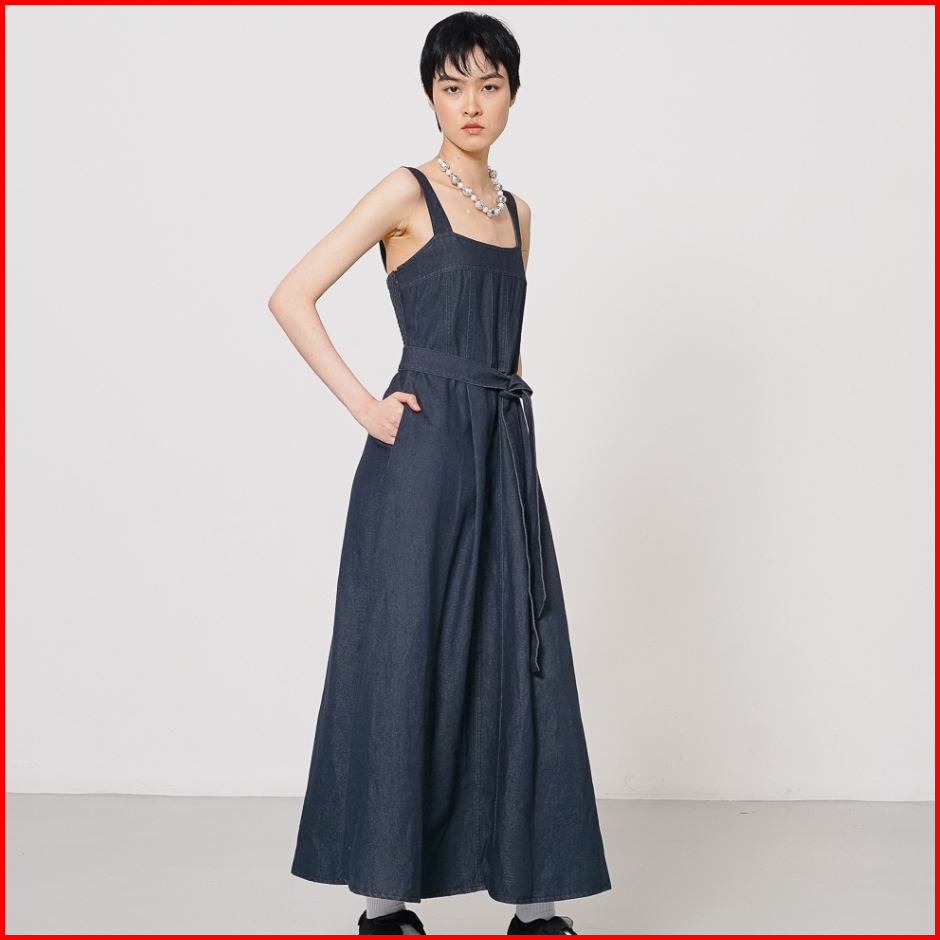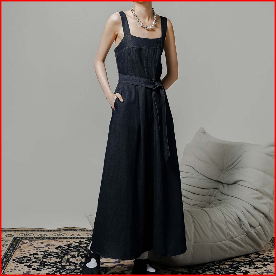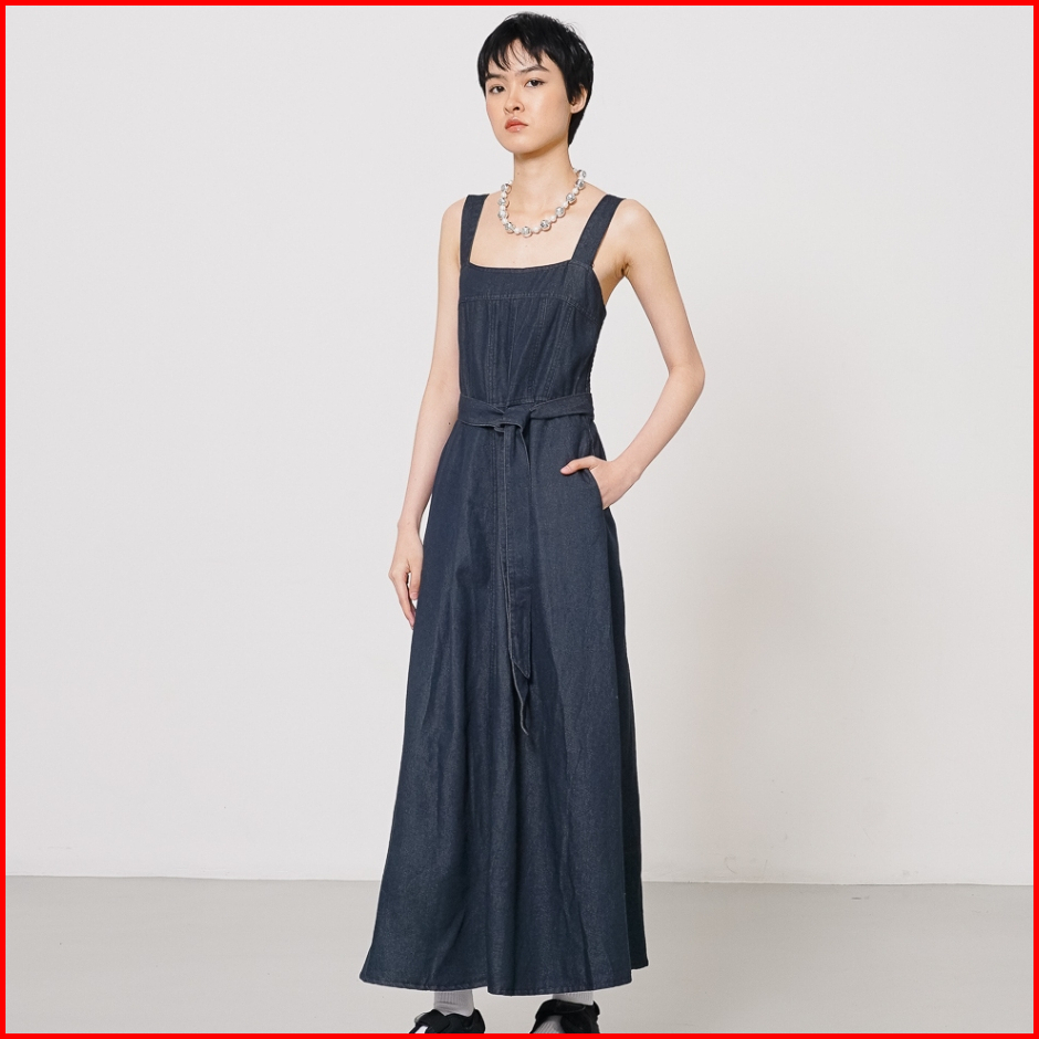This Is April Gaun Maxi Jeans Wanita Tanpa Lengan Willin Dress Denim 70024900