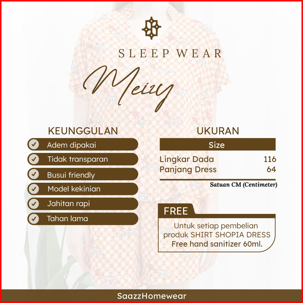Saazz Meizy Sleepwear Piyama Pajamas Wanita Pendek Sehari Hari