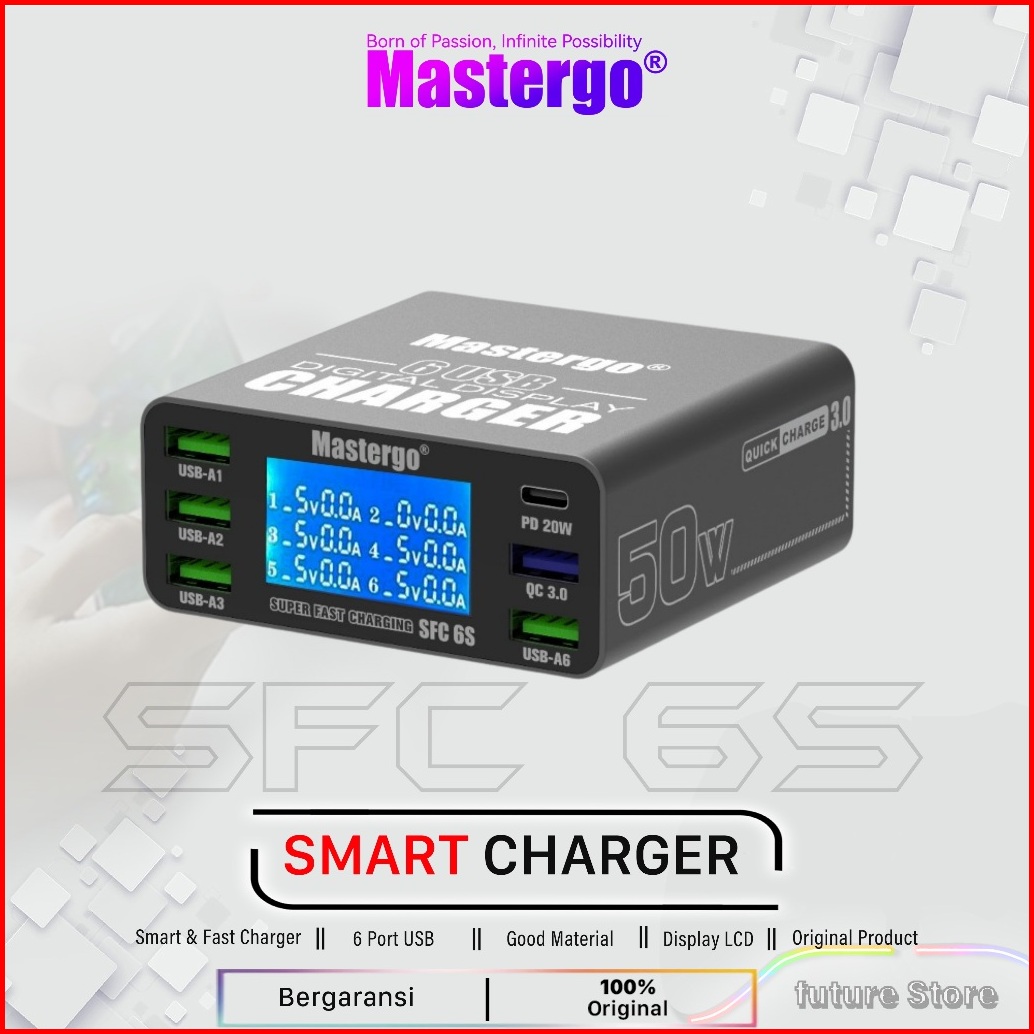 Supercharger-mastergo Fast Smart Charger Android Phone Multiport Original - Usb Charger 6 Port - Desktop Charger 6 Port