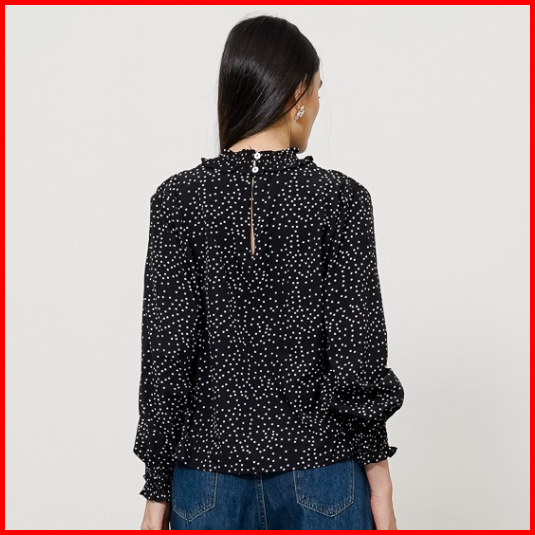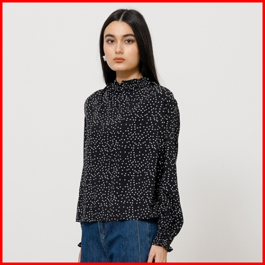 This Is April Baju Atasan Wanita Terbaru Polkadot Lengan Panjang Christy Top Black 10061500