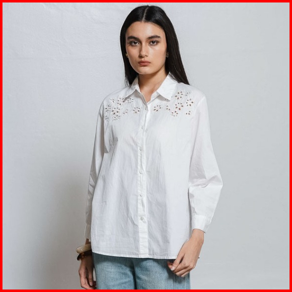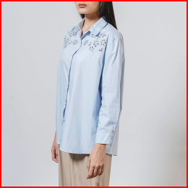 This Is April Baju Atasan Kemeja Wanita Terbaru Lengan Panjang Embroidery Carly Top White Dusty Pink Dan Blue